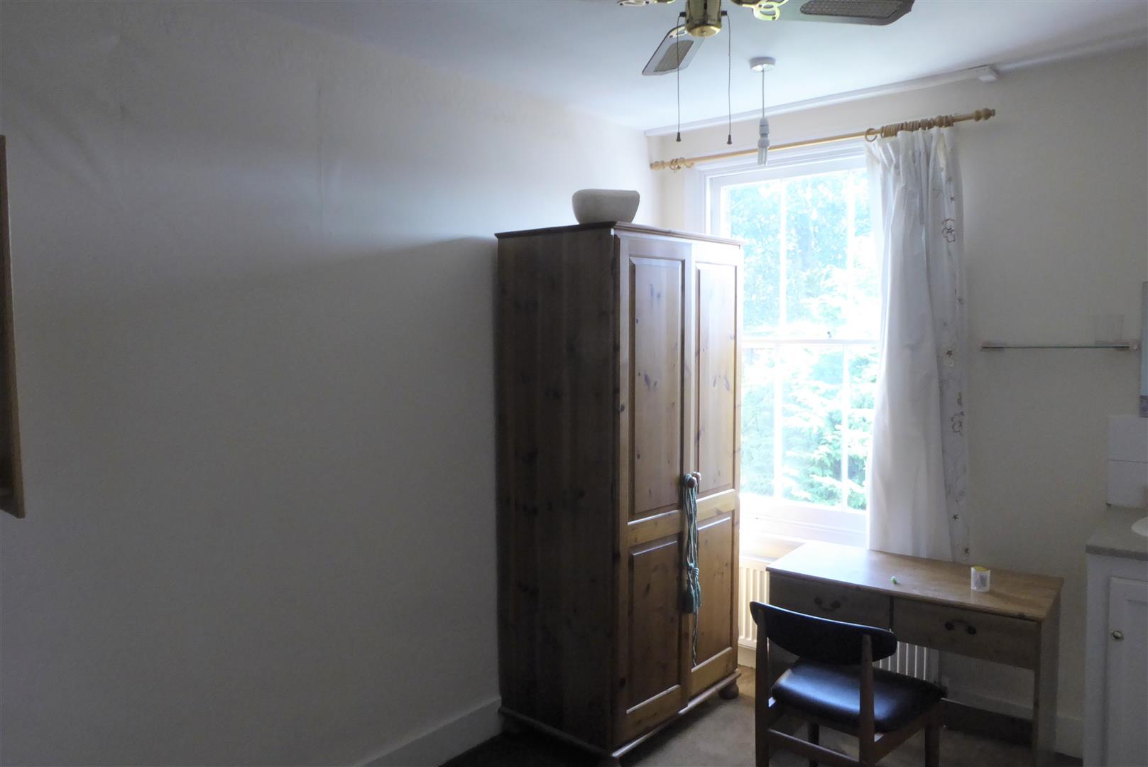 Bedroom Two - Rear aspect sash window, hand wash basin in vanity unit, carpet.