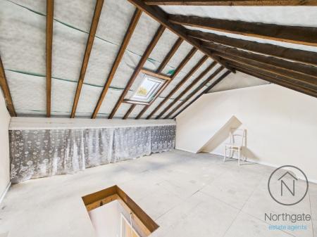 To the first floor, there are three well-proportioned bedrooms with access to the boarded attic, offering flexible additional space for storage, hobbies, or occasional use.