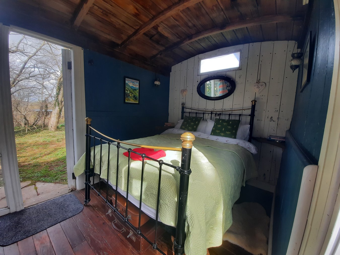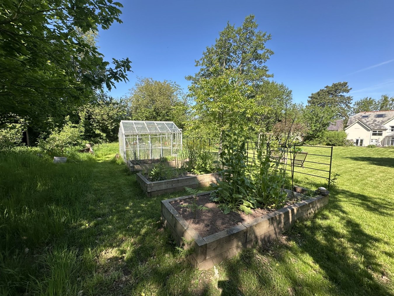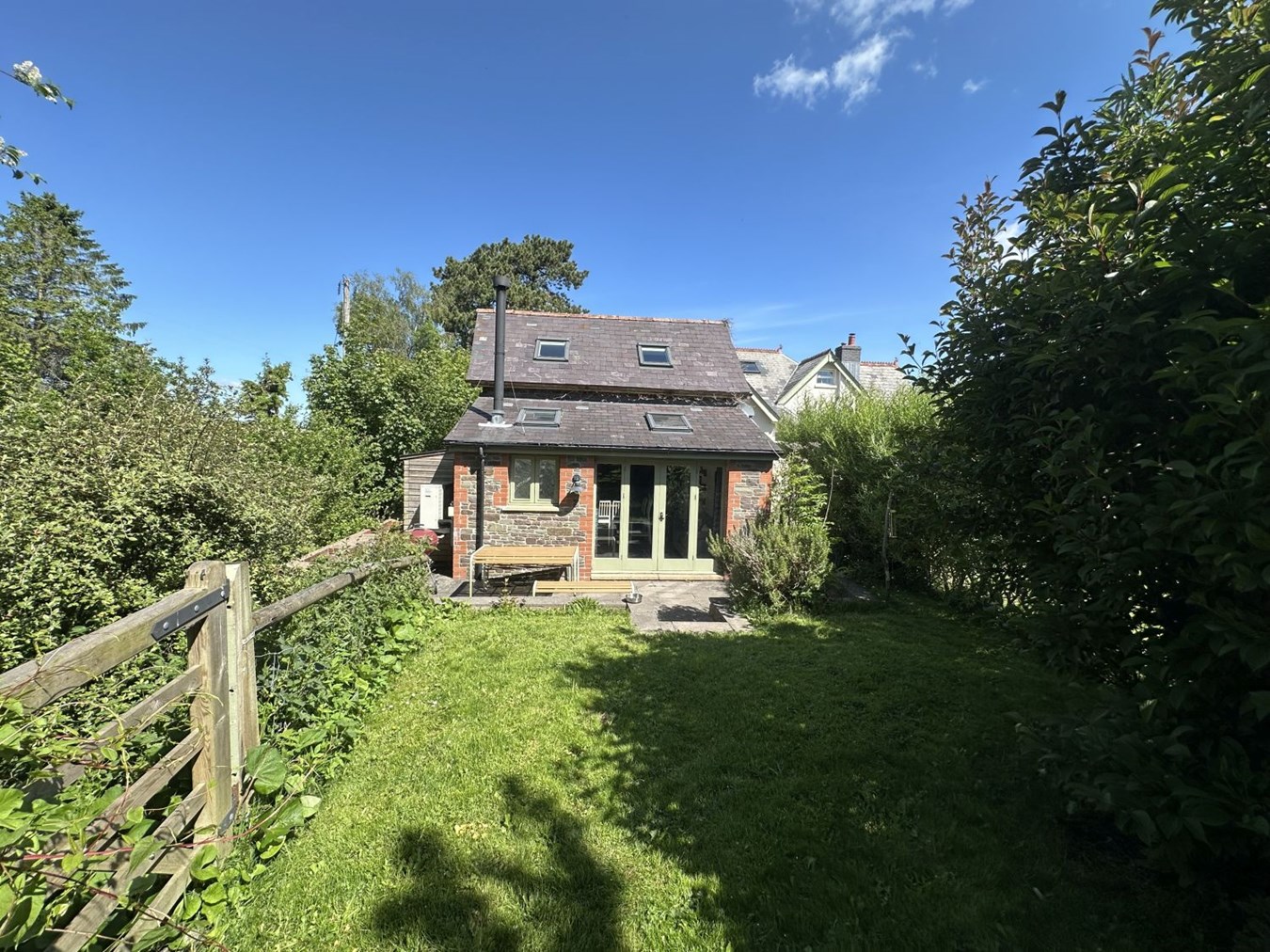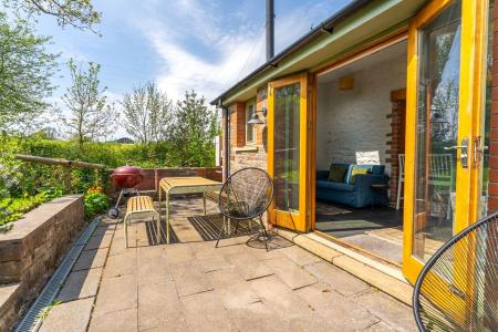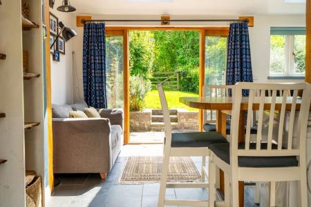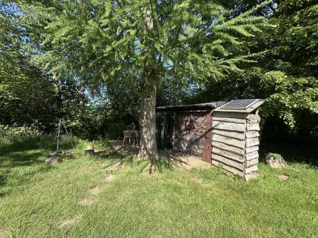 The annexe benefits from its own screened rear garden, offering a private outdoor space. Beyond the formal garden are raised vegetable beds, a greenhouse and two espaliered fruit trees. Further still is a paddock, wood store, chicken run and a wild off-grid camping area, featuring a converted railway carriage used as sleeping accommodation, an open-air shower and a composting toilet, perfect for glamping or additional guest space.