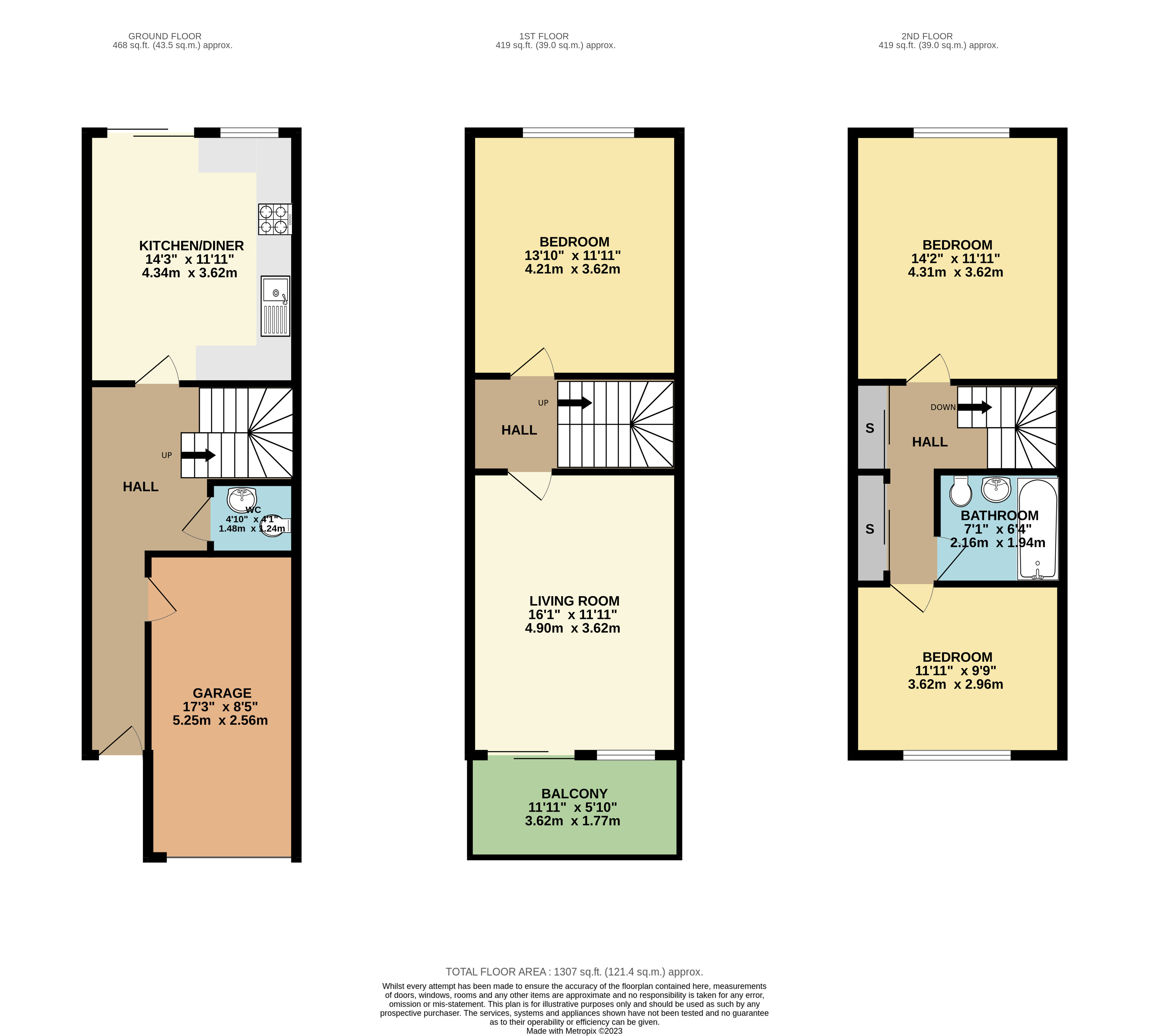 Brief internal accommodation comprises an entrance hallway, integral garage, guest cloakroom and kitchen/diner. The first floor offers a spacious living room with balcony and master bedroom. The second floor provides a further two double bedrooms and refitted bathroom. Externally the property boasts a private rear garden.