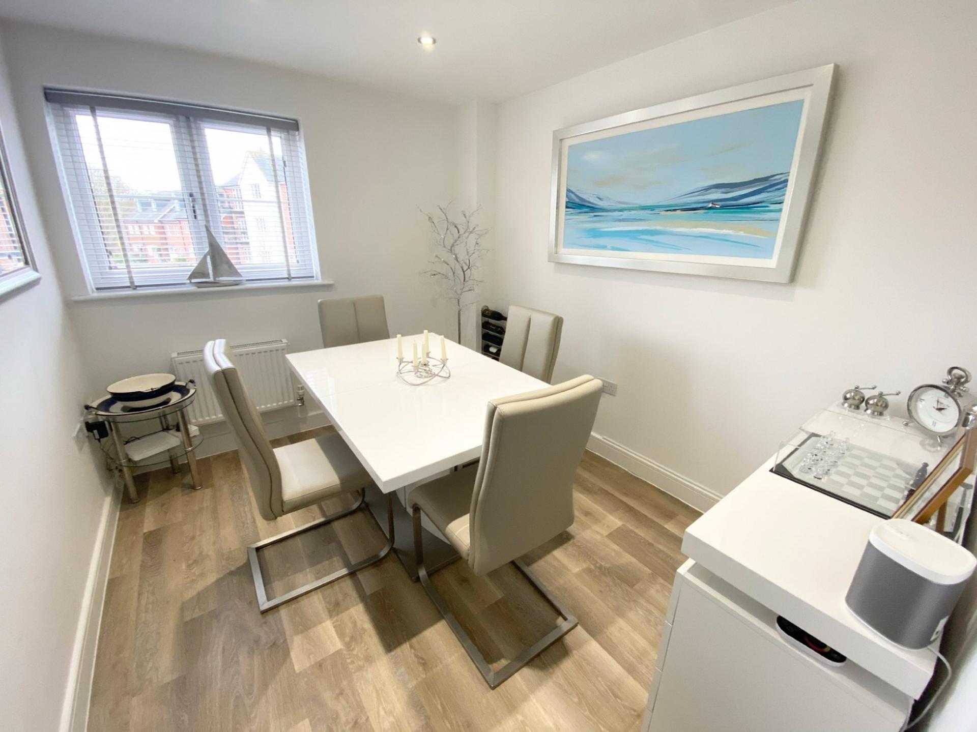 Hamiltons are proud to offer to the market this recently constructed, spacious three-bedroom property, situated on a sought after development surrounded by beautiful woodland. The flexible accommodation comprises a double aspect living area including a stylish kitchen with a matching range of white hi-gloss handless units, integrated appliances including fridge/freezer, washing machine, oven and induction hob above. Adjacent to the living area is the dining room/bedroom three and the cloakroom.