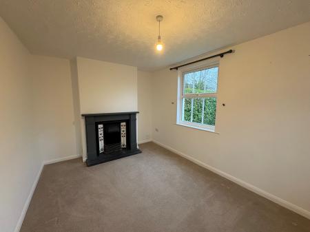 SITTING ROOM 14' 8" x 10' 2" (4.48m x 3.12m) Victorian style fireplace with raised hearth and tiled inserts, dual aspect with UPVC windows to the front and side elevations, radiator, fitted carpet, ceiling light.