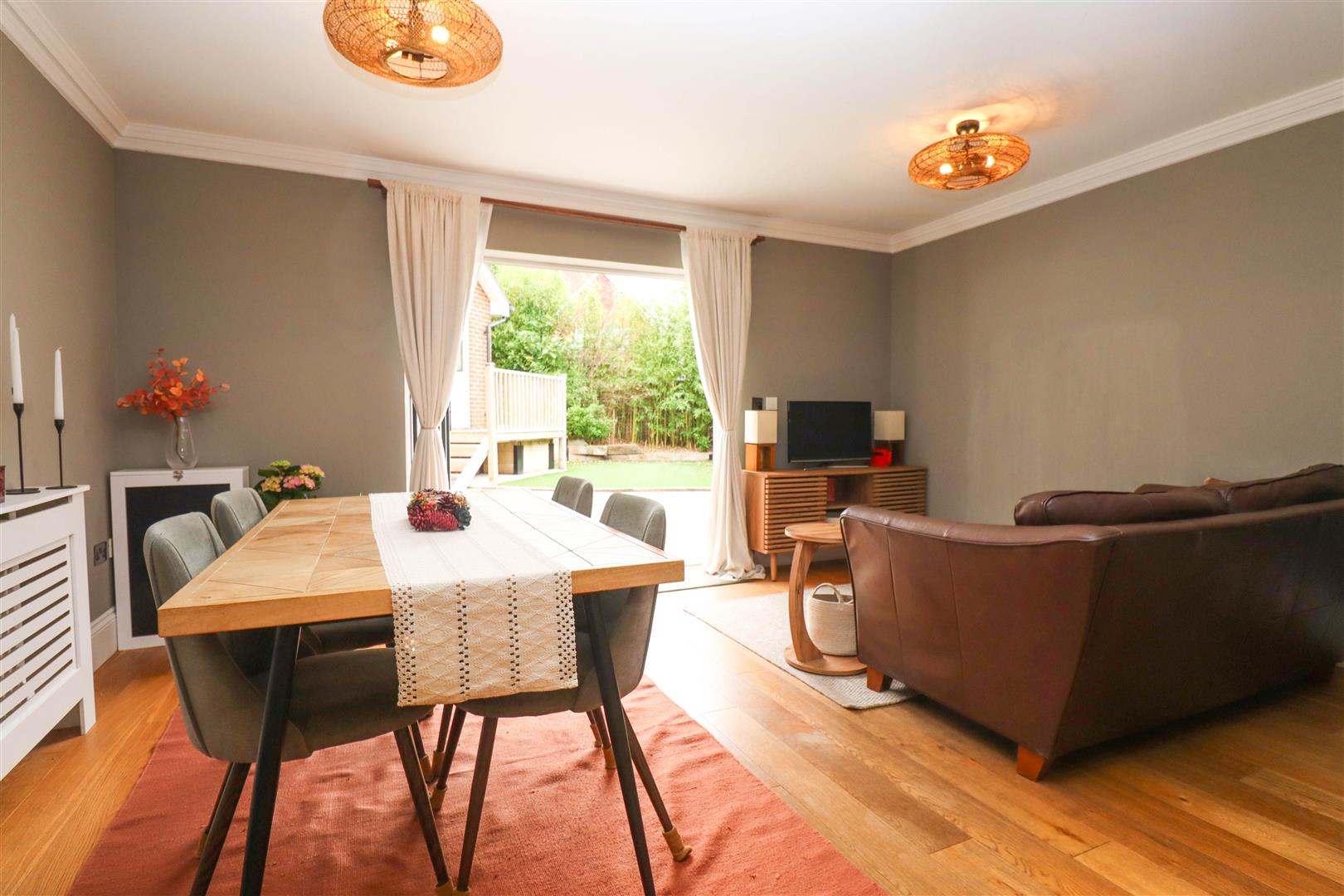 The beautifully presented rear garden is offers artificial grass with well-established flower and shrub beds throughout. To the rear of the garden is a spacious patio area and at the bottom of the garden is a decking area which is ideal for al fresco dining. To the front there is driveway parking with access to the single garage.
