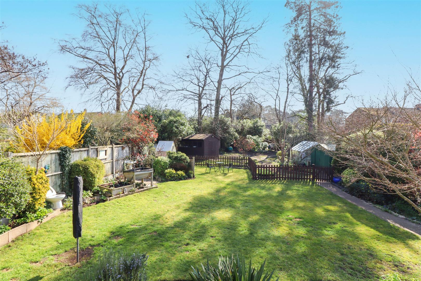 The charming, enclosed garden is mainly laid to lawn with well-established flowers, shrubs, and trees throughout. The garden offers a high degree of privacy, with a spacious patio area ideal for al fresco dining. At the rear of the garden, there is a small, wooded area with several outbuildings providing ample storage and a gate giving access to a footpath, from which the Basingstoke Canal is a short walk away.