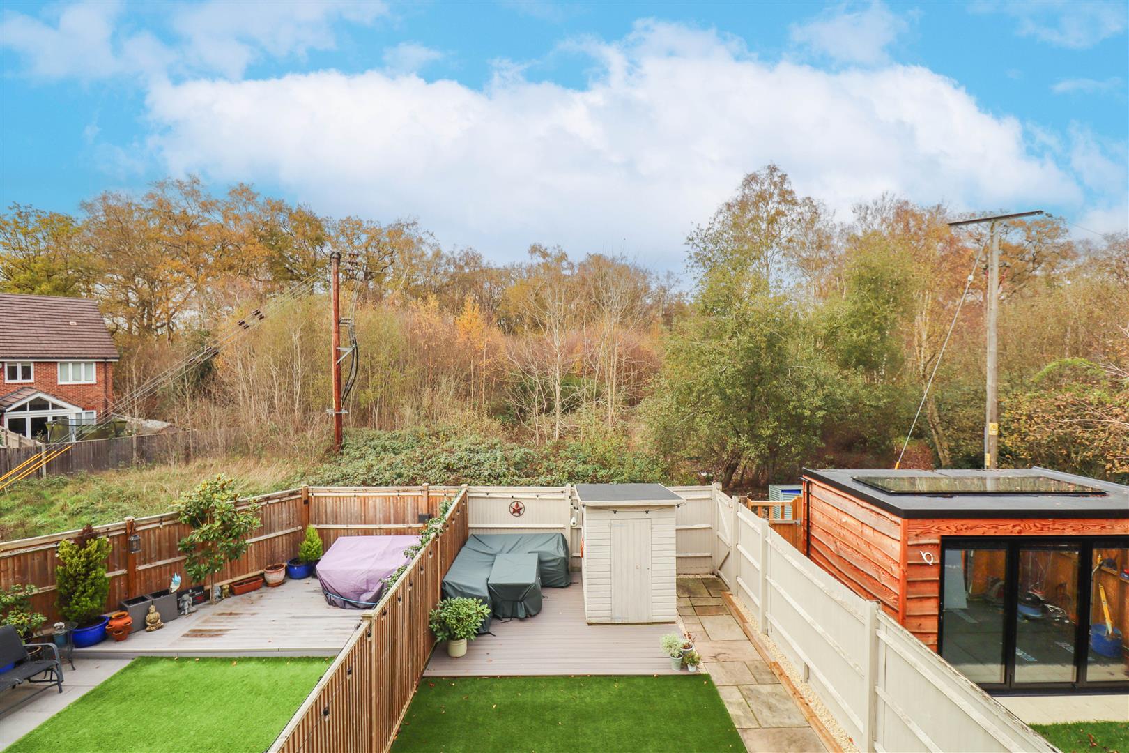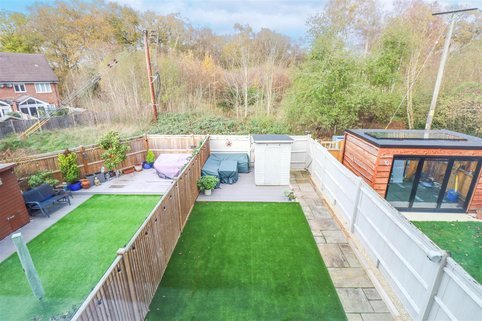 The well-presented rear garden offers a generous low maintenance artificial lawn area and a mixture of flowers throughout. Outside the back of the property is a small patio area and at the rear of the garden a decking area can be found which is ideal for al fresco dining. Access to the front of the property and woodlands behind can be found within the garden.