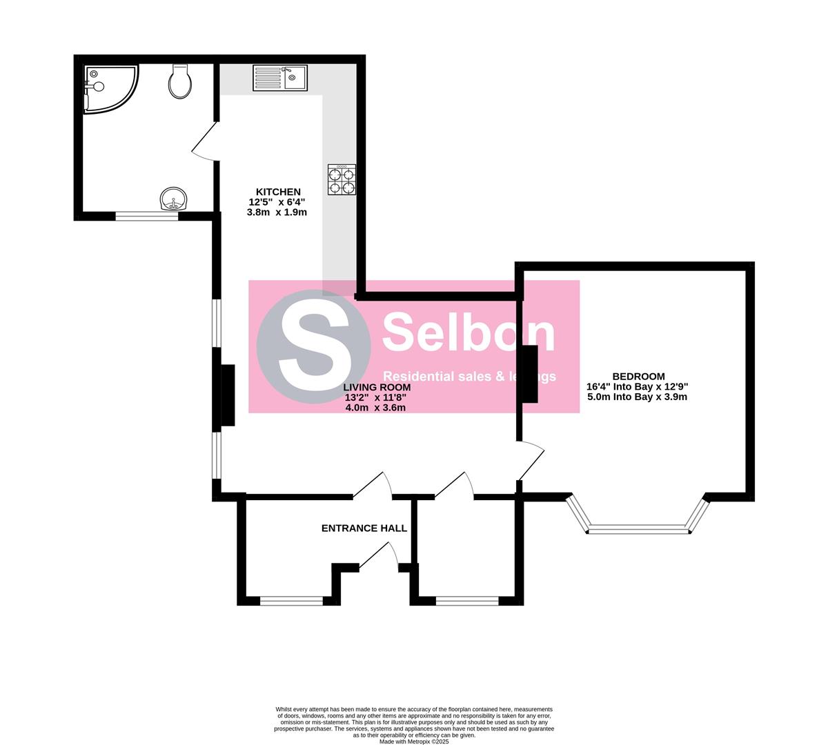 The generous bedroom features a front aspect bay window and wood flooring. The shower room is fitted with a corner shower cubicle, hand wash basin and W.C.