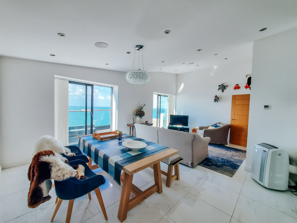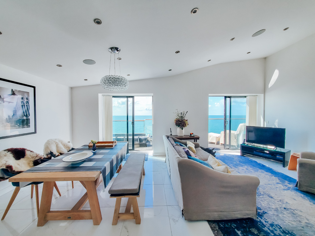 A stylish and contemporary two bedroom penthouse apartment presented in immaculate condition and enjoying panoramic sea views across the English Channel to the French coastline. This luxury home boasts many desirable features including triple-glazed windows, a high specification 'Umbermaster' kitchen with integrated appliances, a large open plan living space with modern tiled flooring, a south-facing large terrace, a master bedroom with en suite shower and walk-in wardrobe, a further bedroom and a separate bathroom. In addition, there is underfloor heating throughout, as well as secure under croft parking with an allocated parking space and a private store room. Being sold with the added incentive of having no onward chain, an early viewing comes highly recommended.