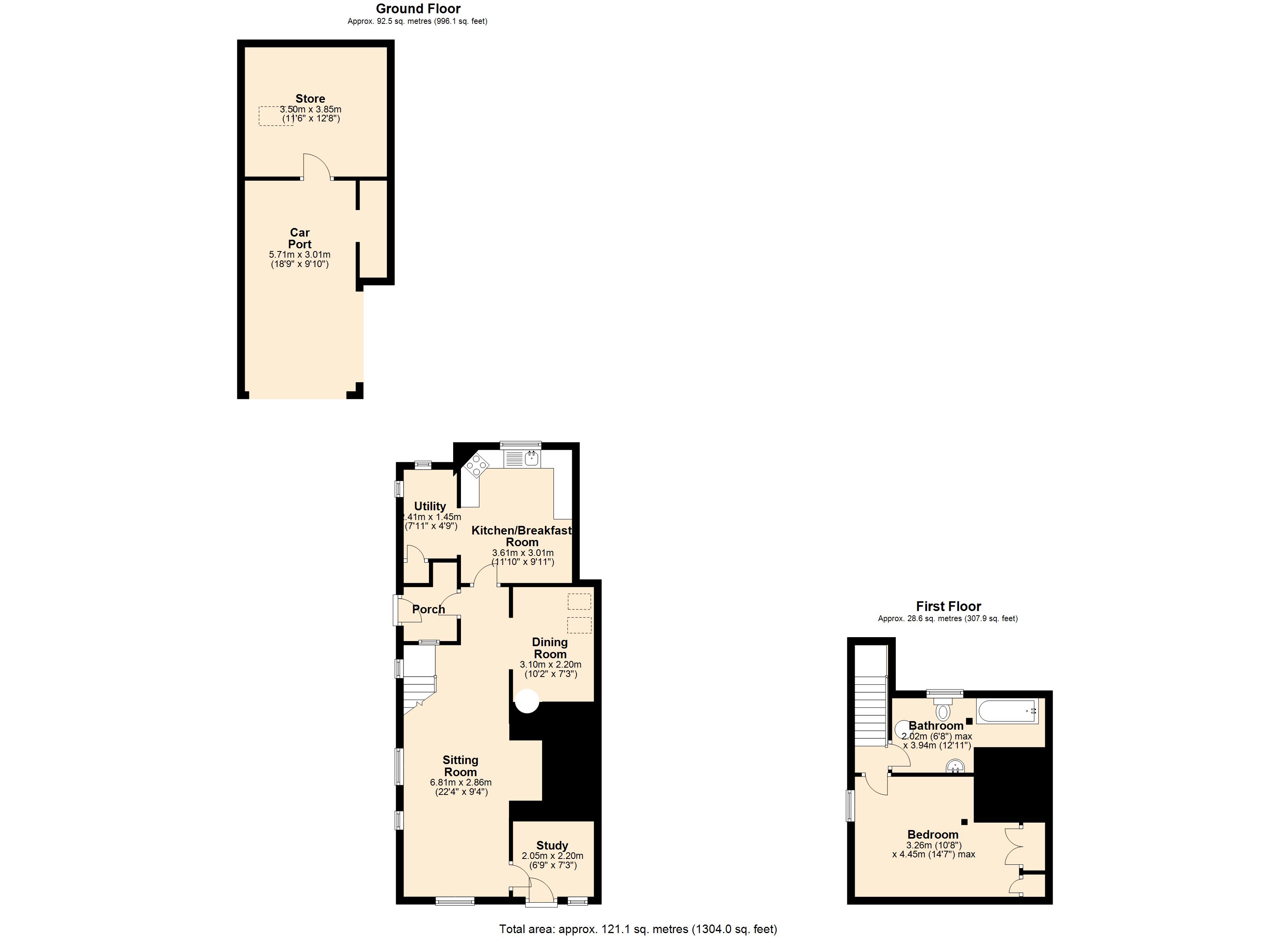 The property is approached through a five bar gate opening to a generous gravel driveway to the side of the cottage leading to an oak framed carport and open fronted garage with a STORE and OFFICE/STORE with power points and electric heater which could offer alternate use (subject to securing all relevant planning consent), such as work-from-home space.