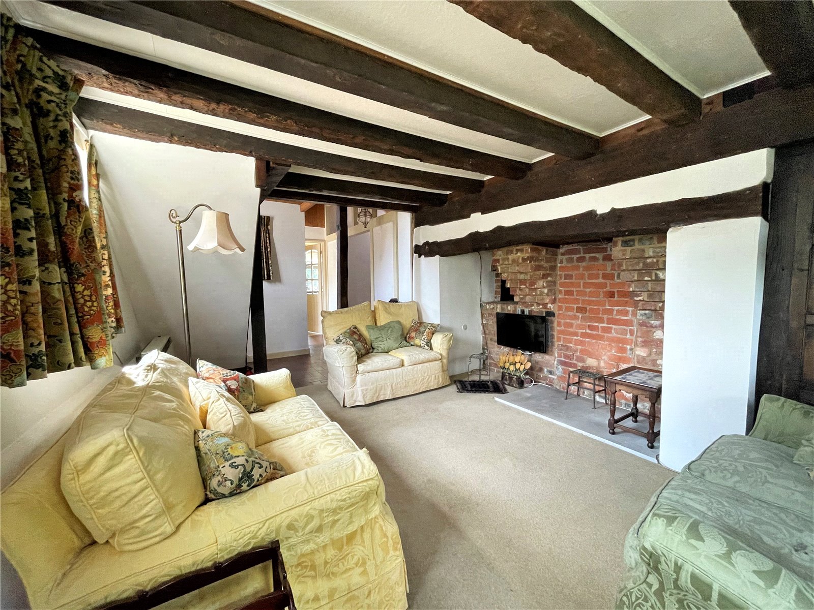 Sitting Room Inglenook fireplace (not in use) with bread oven. 2 electric storage heaters.
