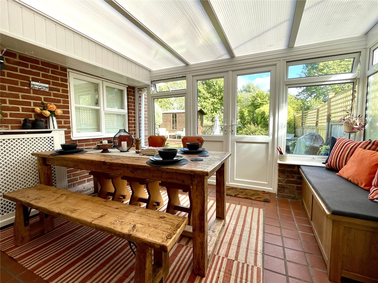 Conservatory Double doors to rear garden. Range of fitted storage cupboards. Wooden work surface. Tiled floor.