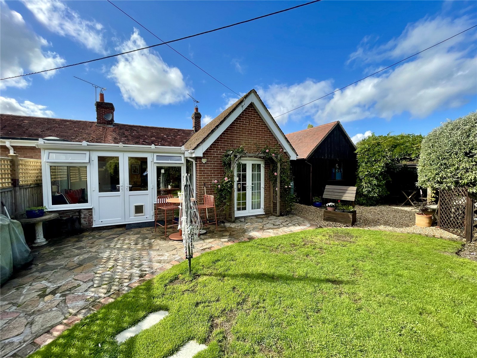 A set of wrought iron gates provide vehicular access to a gravelled parking area and a SINGLE GARAGE with double doors, power and light connected and a personal door. The driveway is flanked by lawn and a front patio enjoys a lovely, sunny aspect and a wonderful outlook over Breamore Marsh.