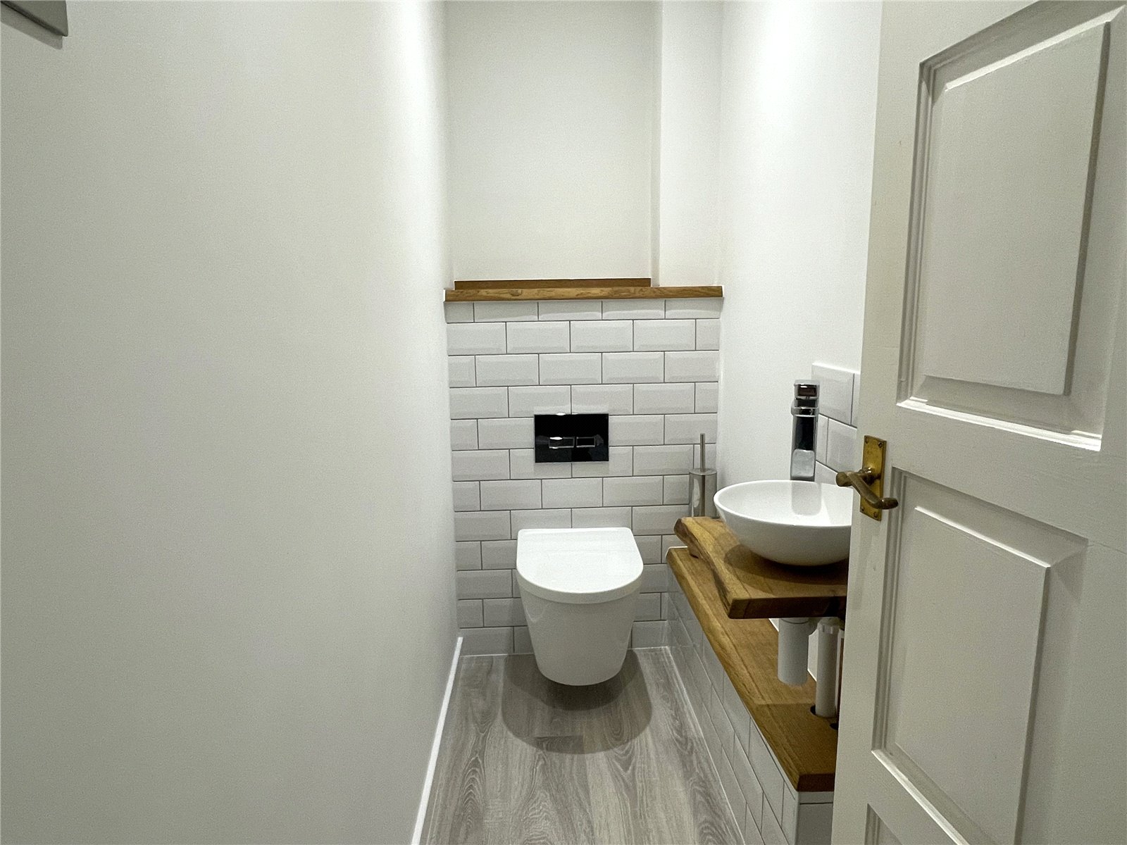 Cloakroom Refitted with a white suite comprising WC and wash hand basin.
