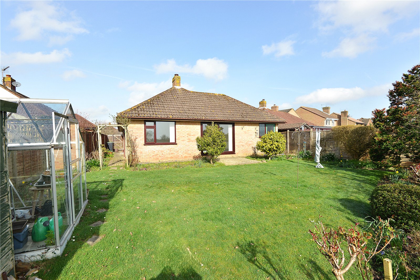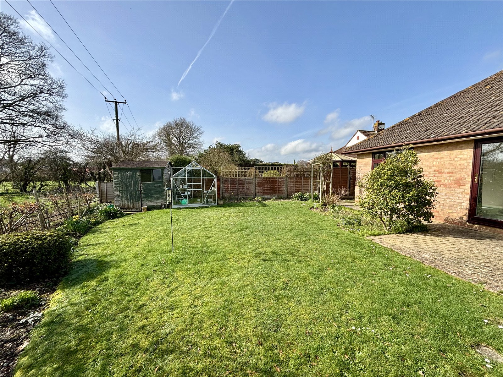 To the front of the bungalow is a gravelled driveway that supplies ample parking for 3 - 4 vehicles. Access to the SINGLE GARAGE with an up-and-over door, power and light connected and a personal door to the rear. There is a gated pedestrian side access to the rear garden and the driveway is flanked by an area of level lawn featuring a shrub bed. To the rear of the bungalow is a patio area with lawn and flower beds beyond. The garden adjoins open farmland and enjoys a southerly orientation, ensuring a high level of sunlight, and there is a garden shed and greenhouse in one corner.