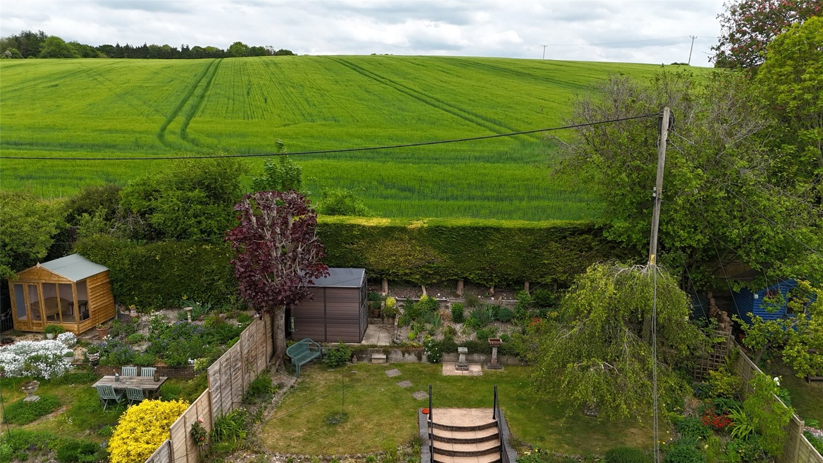 Accessed from the dining/garden room at the rear of the property is a sizeable wrap around patio enclosed by retaining brick wall. Steps lead up to an elevated lawn with beautifully maintained flower borders and a useful garden shed in one corner.