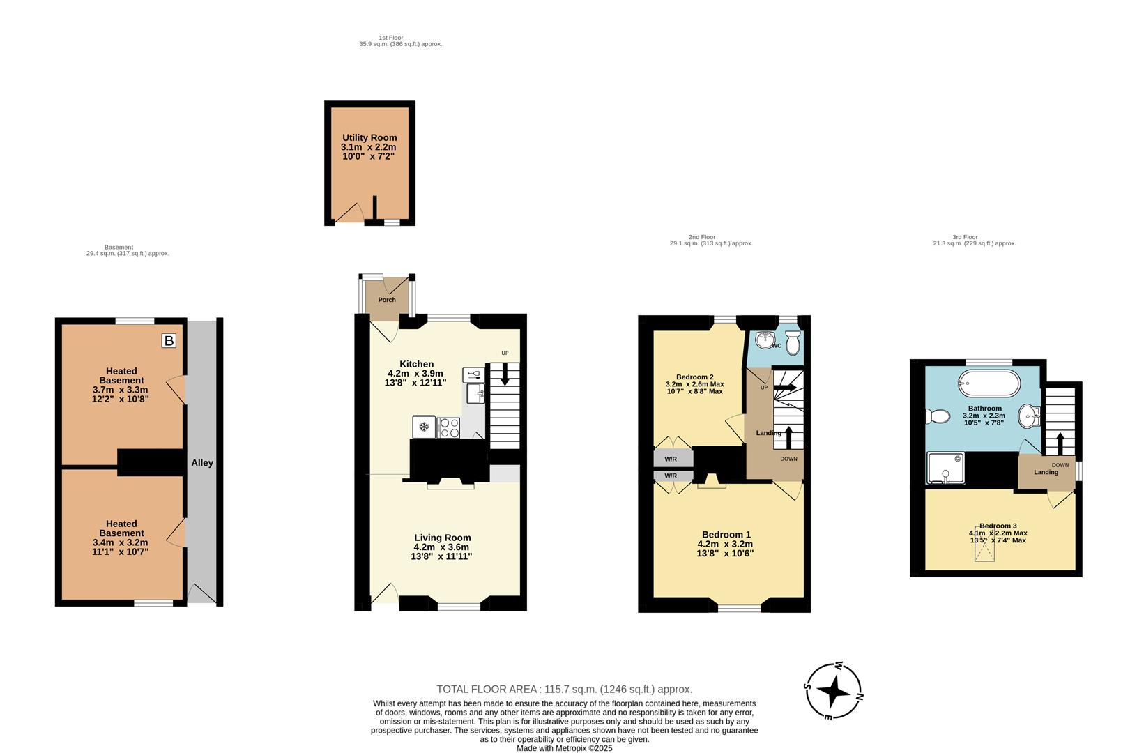 There is a useful cloakroom with WC and wash basin, window to the rear elevation.