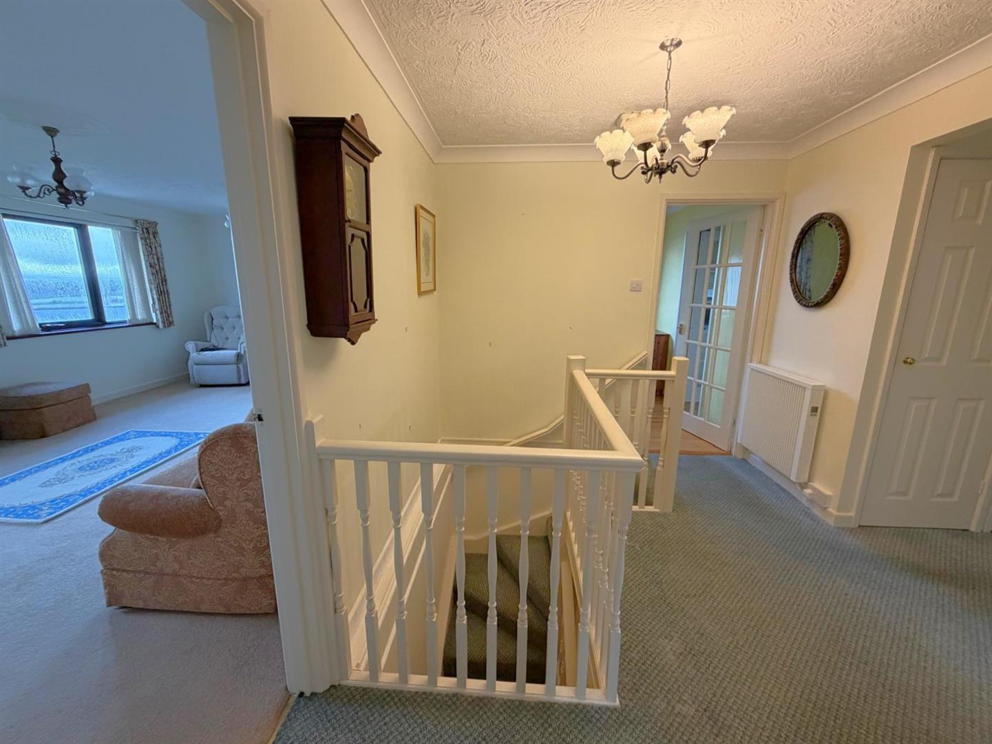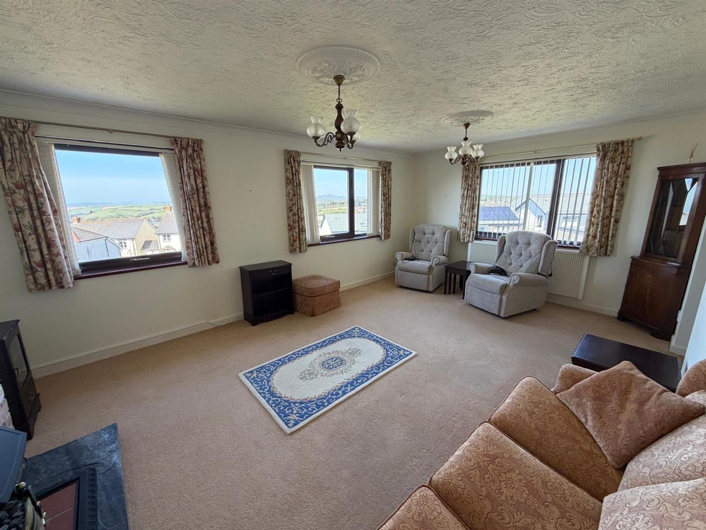 A SPACIOUS DETACHED 4 BEDROOM HOUSE WITH FLEXIBLE LIVING ACCOMMODATION AND LOVELY VIEWS TO THE SEA AND COUNTRYSIDE. GARDENS, GARAGE AND DRIVEWAY PARKING.