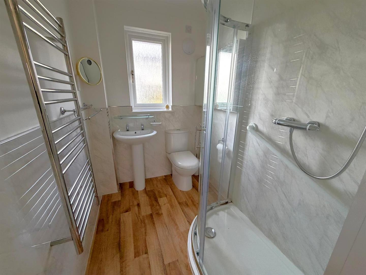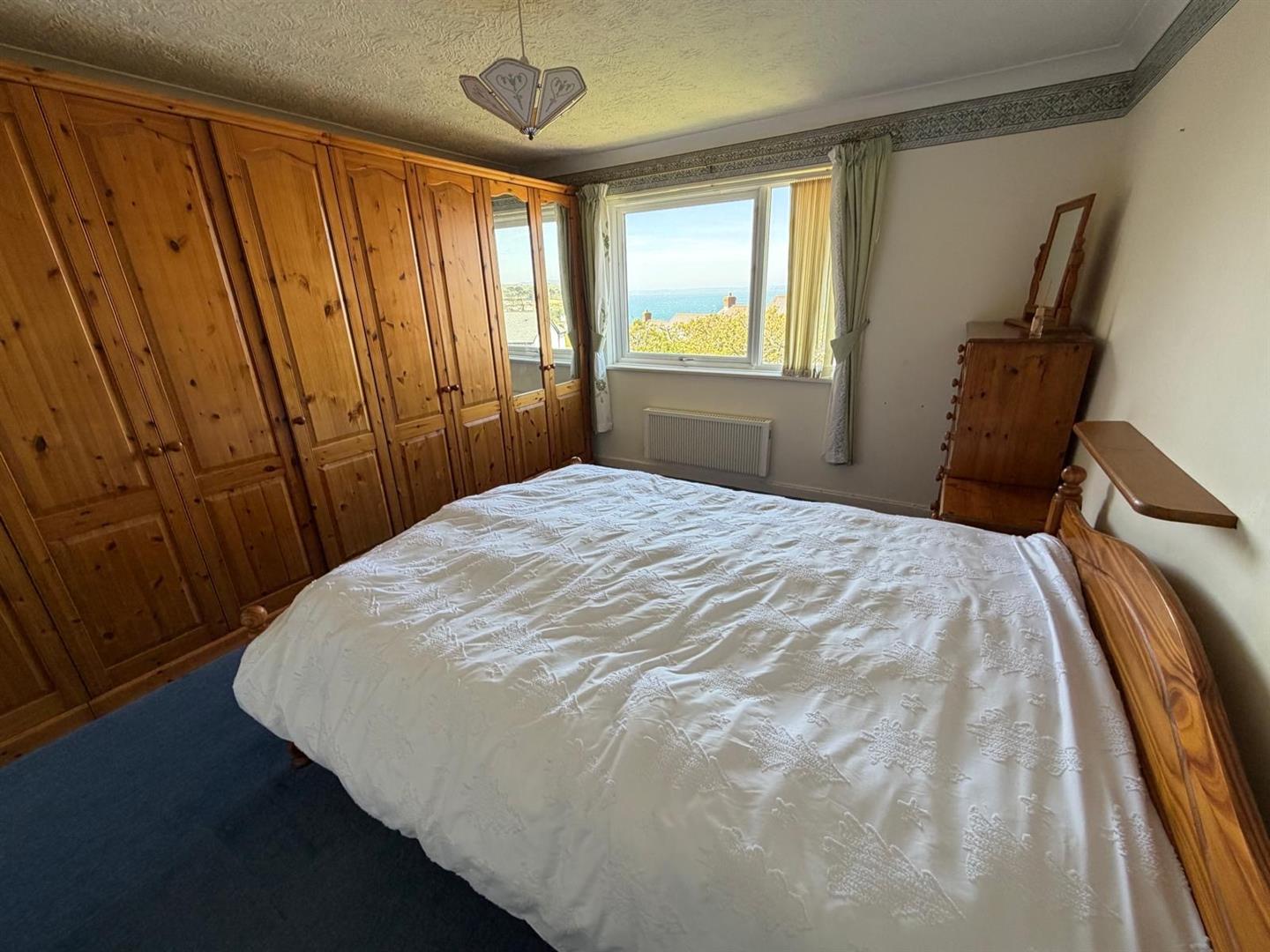 Also accessed from the hallway is bedroom 1 with window affording sea views and ensuite shower room.