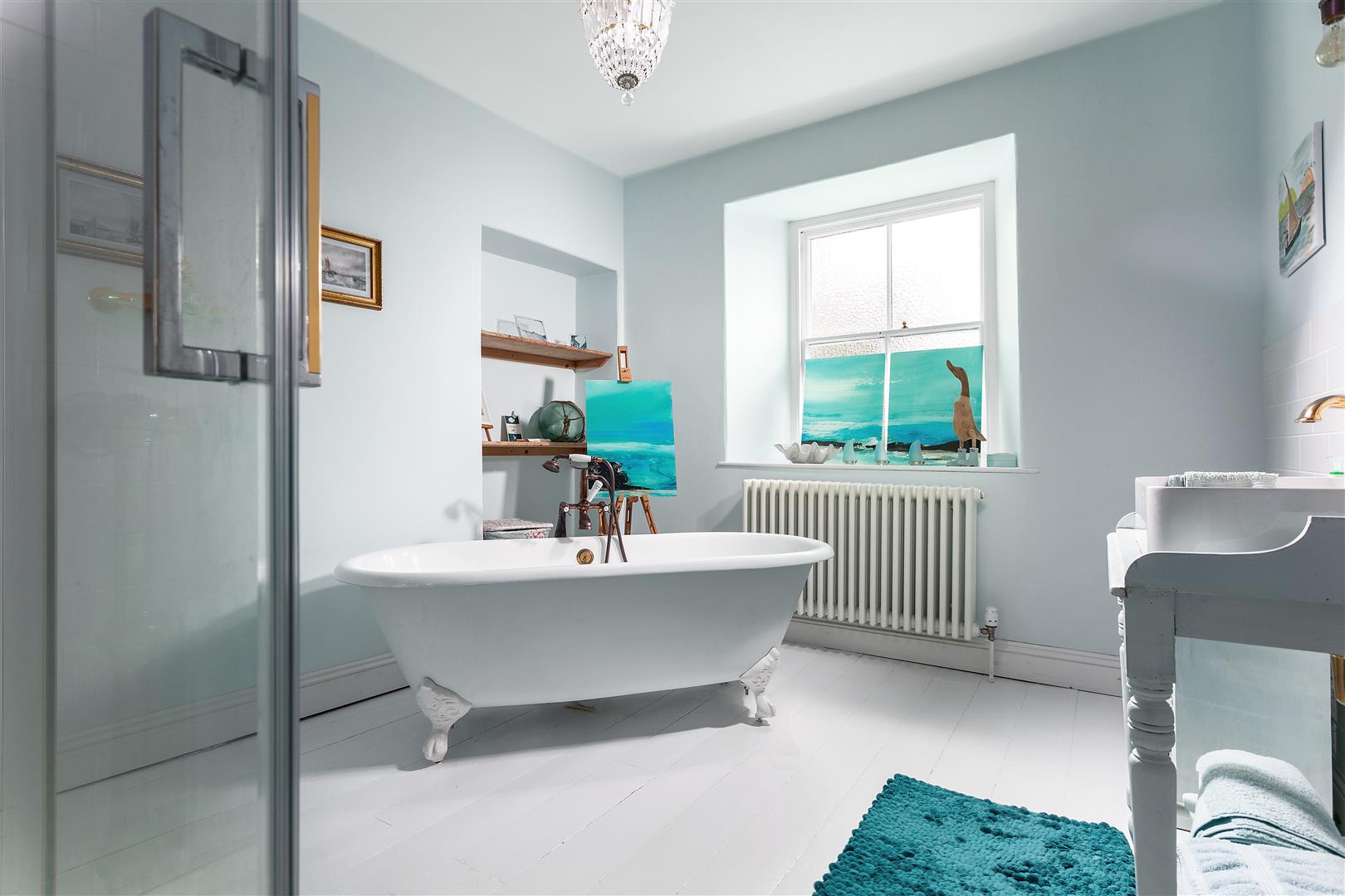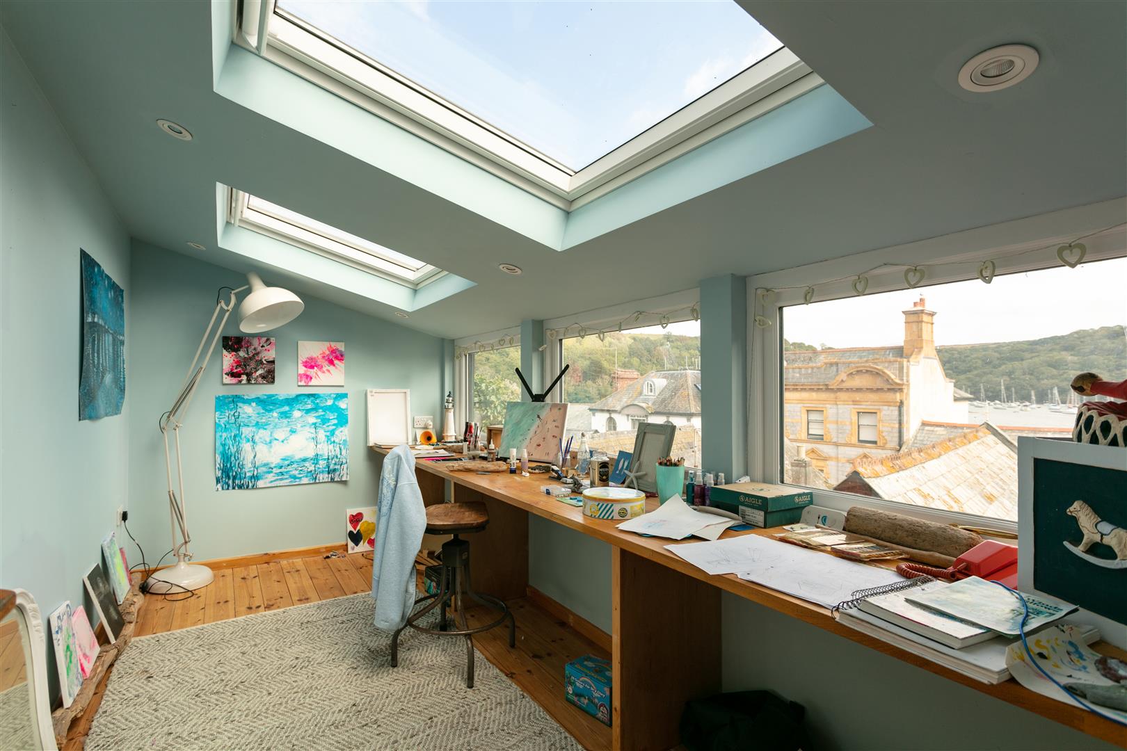 The staircase from the lounge leads upto to both the first and second floors. The first floor provides 3 excellent bedrooms. Two of the bedrooms are double aspect and the largest also has a unique feature round portal style window on its southerly aspect that also enjoys the delightful views. The third bedroom has a more westerly aspect of the harbour, that also takes in views of the magnificent Place House. The spacious family bathroom on this floor features a cast iron roll top bath and separate shower, as well as high quality fittings from Lefroy Brooks. The second floor is home to the excellent double aspect master bedroom, 2 further bedrooms and a bathroom. The bathroom Jack and Jill bathroom to the main bedroom and is generous in size. It is also fitted with a feature roll top bath and separate shower, as well as fittings from Lefroy Brooks. One of the bedrooms on this floor is currently being used by our clients as an office.
