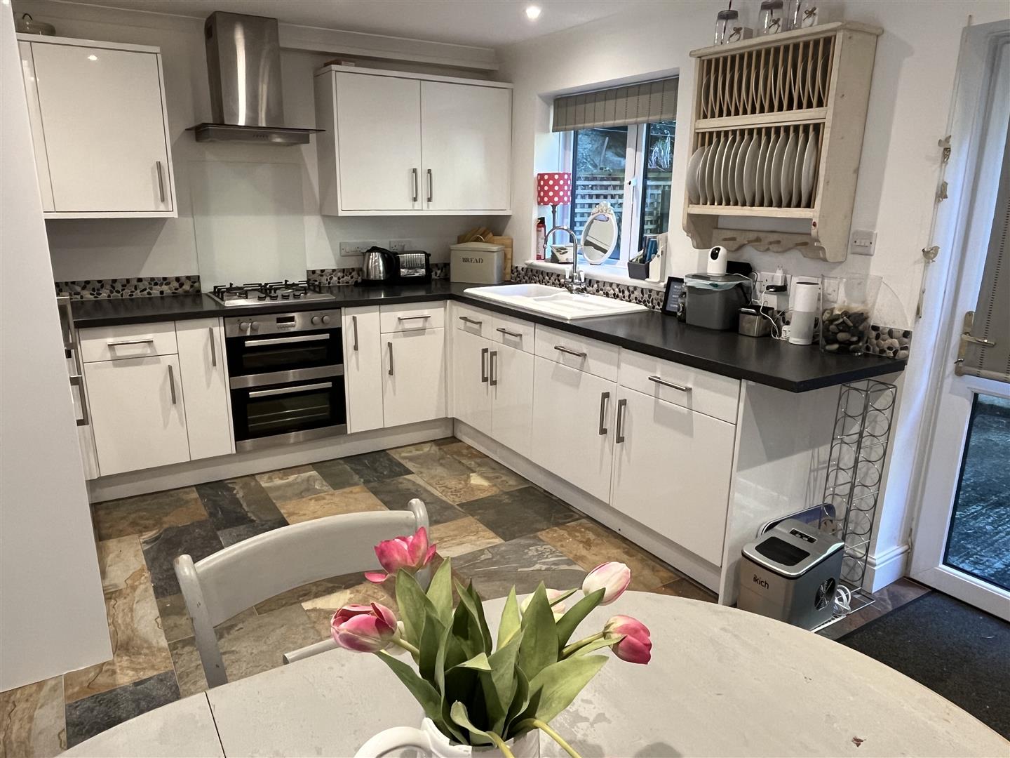 The front door opens to a delightful sitting room with an attractive arched window to the front elevation, wooden floor, useful large storage cupboard and steps leading up to the well appointed kitchen/dining room. The kitchen has a tiled floor, with a range of base and wall units and a number of integrated appliances including fridge-freezer, dishwasher, washing machine and double oven electric cooker with gas hob over. The Glow-worm gas boiler is located within a cupboard. A window overlooks the rear courtyard with a door opening to this area.