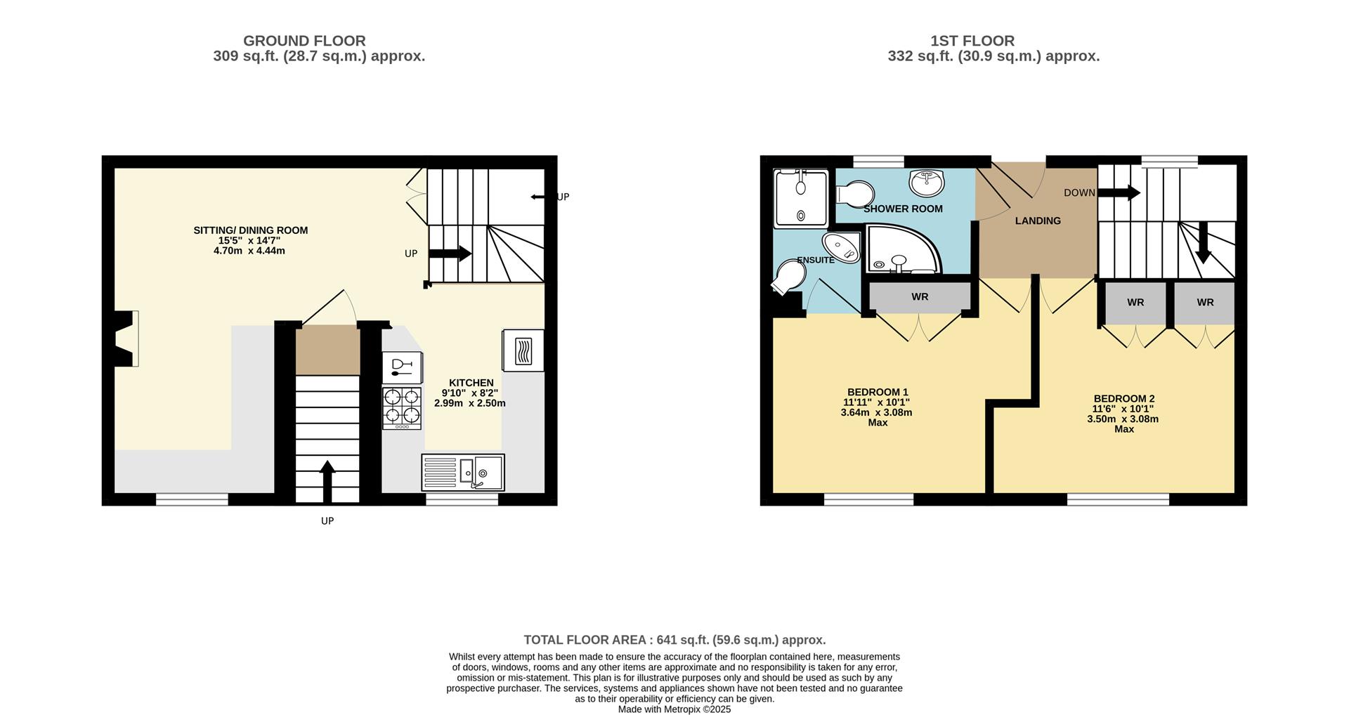 The first floor comprises two bedrooms, one with an ensuite, and shower room.