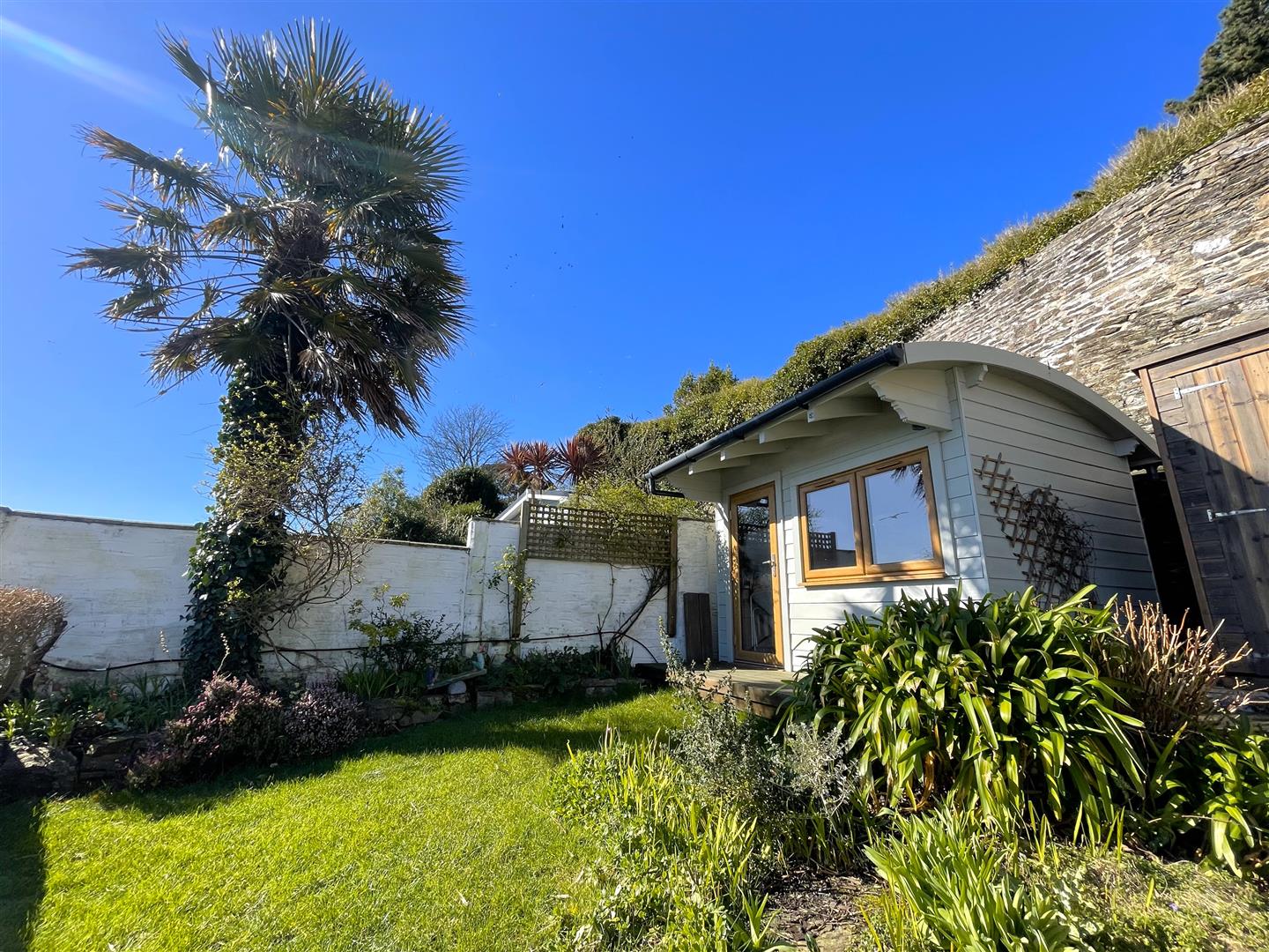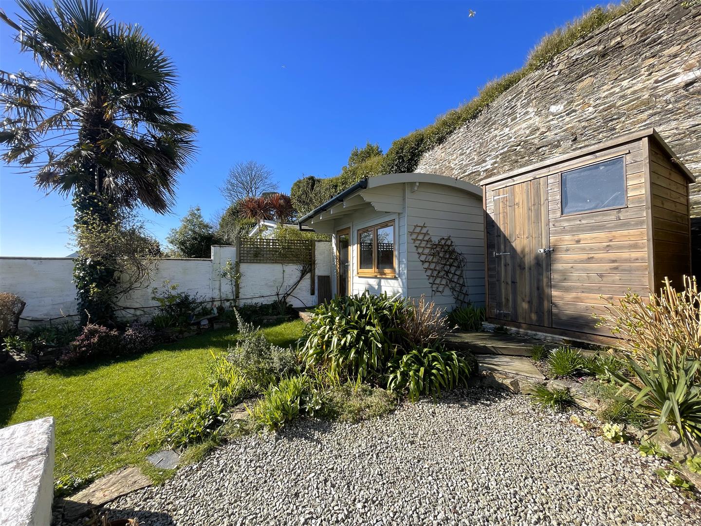 The Outside - From the landing, a door gives access to a concrete covered area with a utility unit that houses the boiler with space and plumbing for a washing machine. Stairs lead up to a gorgeous, private garden. The garden is laid to lawn with a gravelled seating area - superb for relaxing in the sun taking in the panoramic vistas of Fowey harbour. The garden is made private by white rendered walls to the side and pretty Cornish stone wall at the back - there is a well established palm tree and well stocked flower borders, as well as a summer house and timber shed.