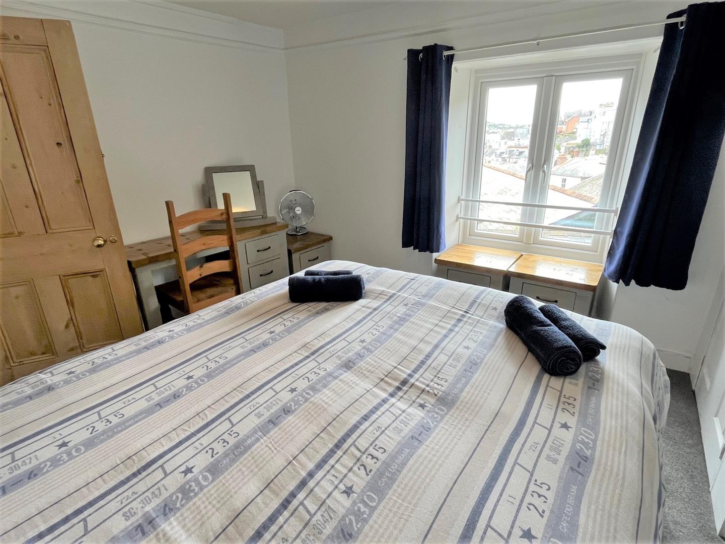 A large double bedroom is located to the rear of the property with window providing pretty views overlooking the town. There is a further double bedroom to the front of the property, currently configured as a twin room, and a contemporary styled shower room with WC, wash hand basin and shower cubicle.