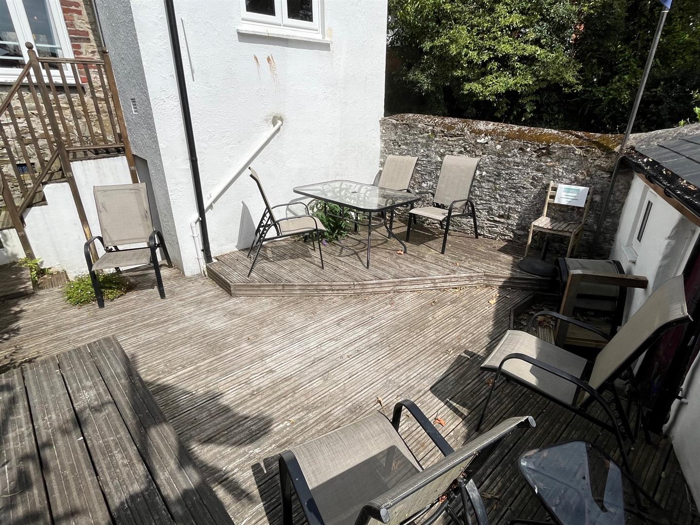The private rear garden is an all day long suntrap perfect for relaxing and sunbathing. It is accessed via wooden steps leading down from the kitchen with a decked area, and large space for table and chairs for those late breakfasts in the sun or suppers in the warmth of the evening. Enclosed by a stone wall and fencing, at the rear of the garden is a very useful outhouse (approx 2.5m x 8m), currently used for storage. From the terrace, steps lead down to a covered porch where there is space and plumbing for a washing machine and is a useful storage space for bins etc. An external doors leads to Rosehill.