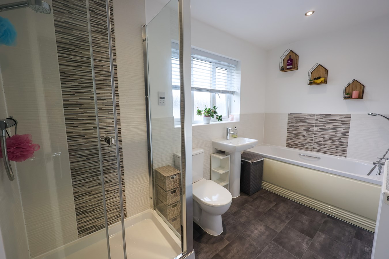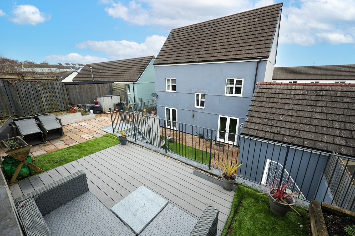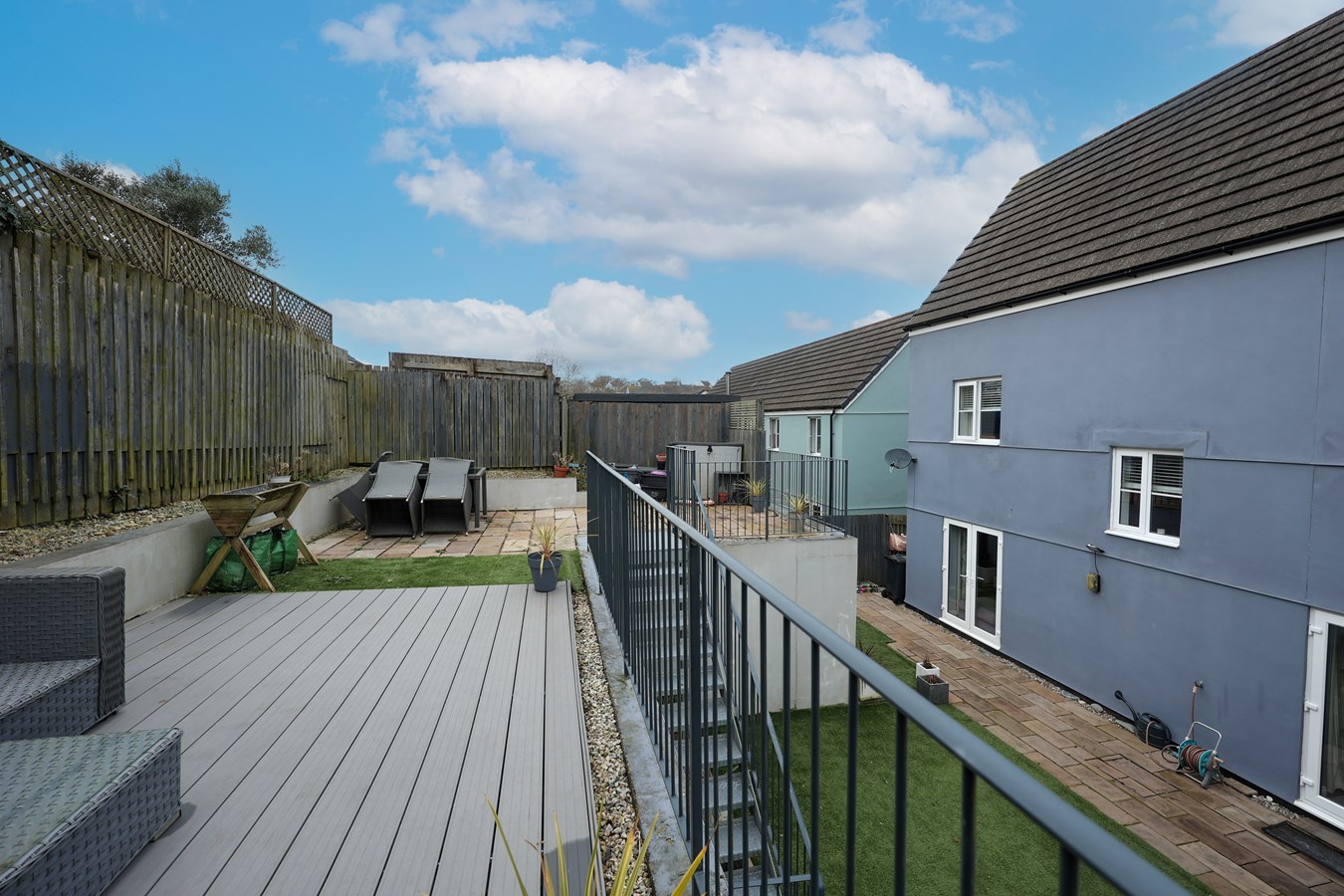 The property enjoys a wonderfully low-maintenance, enclosed rear garden designed for effortless outdoor living. A paved patio and artificial lawn create an inviting space, while steps lead to an extensive raised slate-paved terrace ? perfect for summer dining, evening drinks, or simply unwinding in the sun. A stylish composite seating area and additional artificial lawn complete this versatile outdoor retreat. There?s also an outside tap and convenient side access leading to the front.
