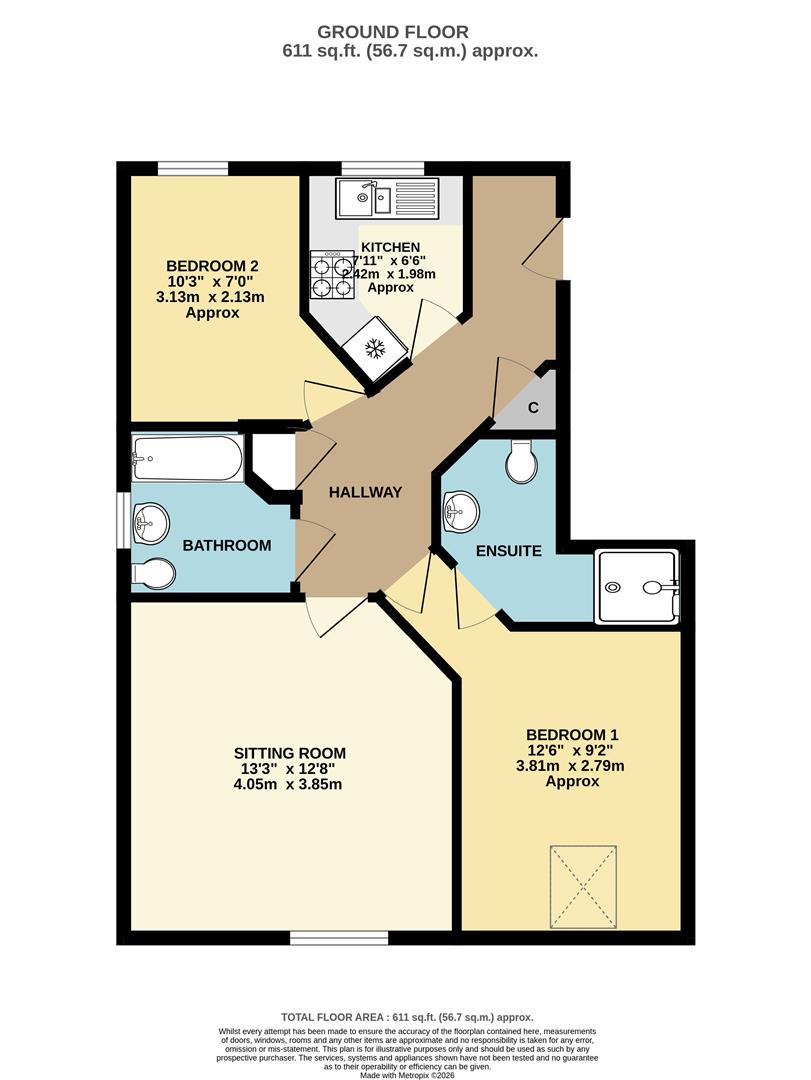 A further bedroom, either a generous single or small double, is located to the front of the property.