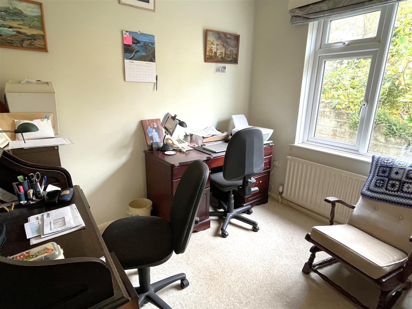 There is a further double room with dual aspect windows and inset wash basin and storage units. The 4th bedroom is a single room, and doubles up as a sewing room.