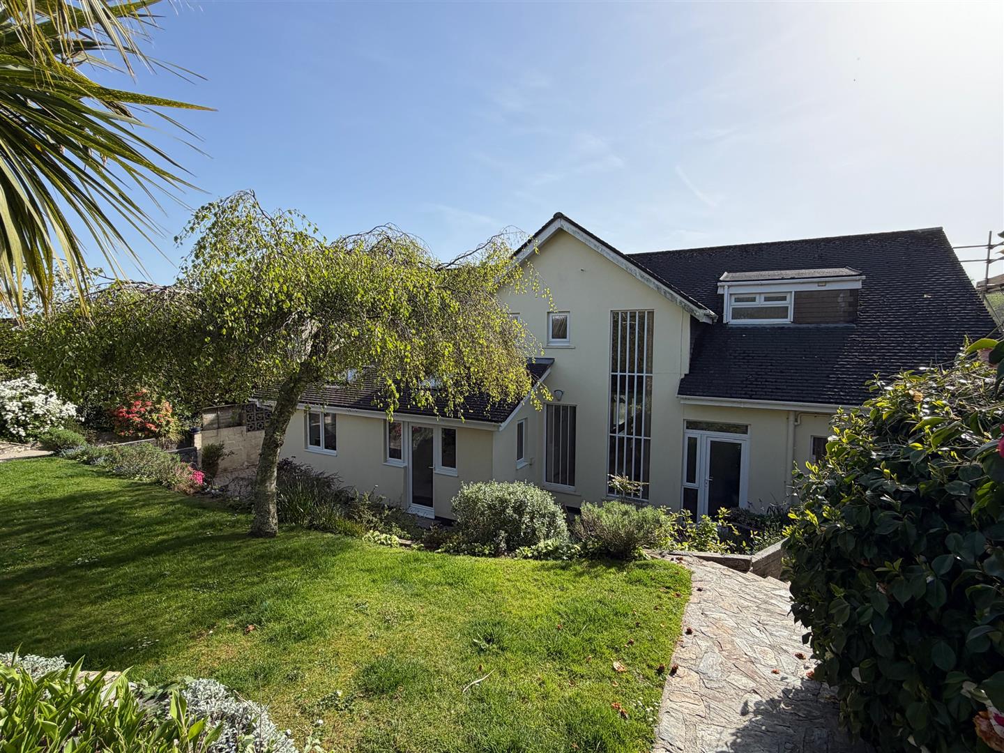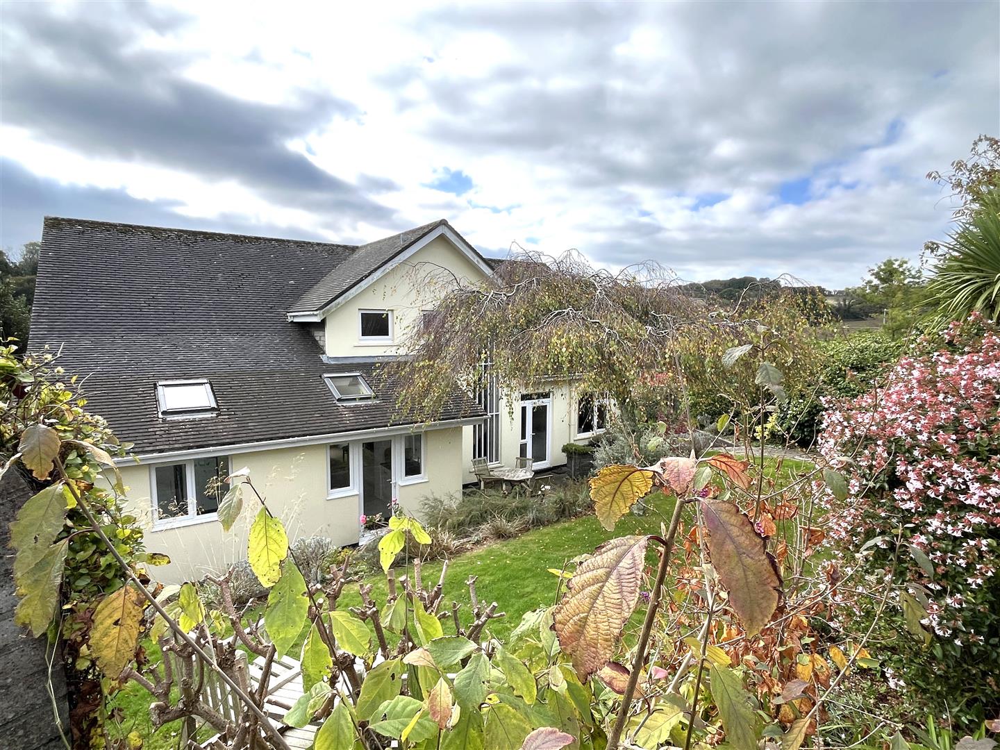 A SPACIOUS 4 BEDROOM DETACHED HOME, WITH LARGE GARDENS AND VIEWS OVER NEIGHBOURING WOODLAND, TOWARDS THE SEA AND POLRUAN HEADLAND. LARGE DRIVEWAY WITH PARKING FOR SEVERAL VEHICLES AND GARAGE. EPC - D