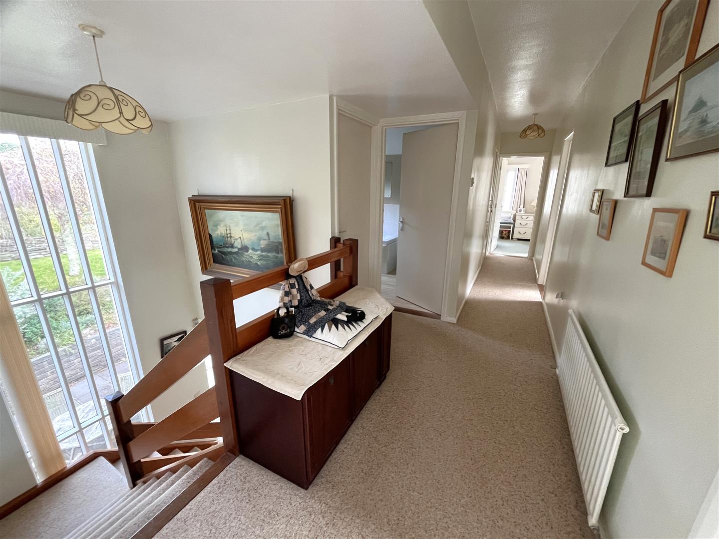 Stairs rise to the first floor where the large landing has doors to all first floor rooms. A large picture window overlooks the rear garden.