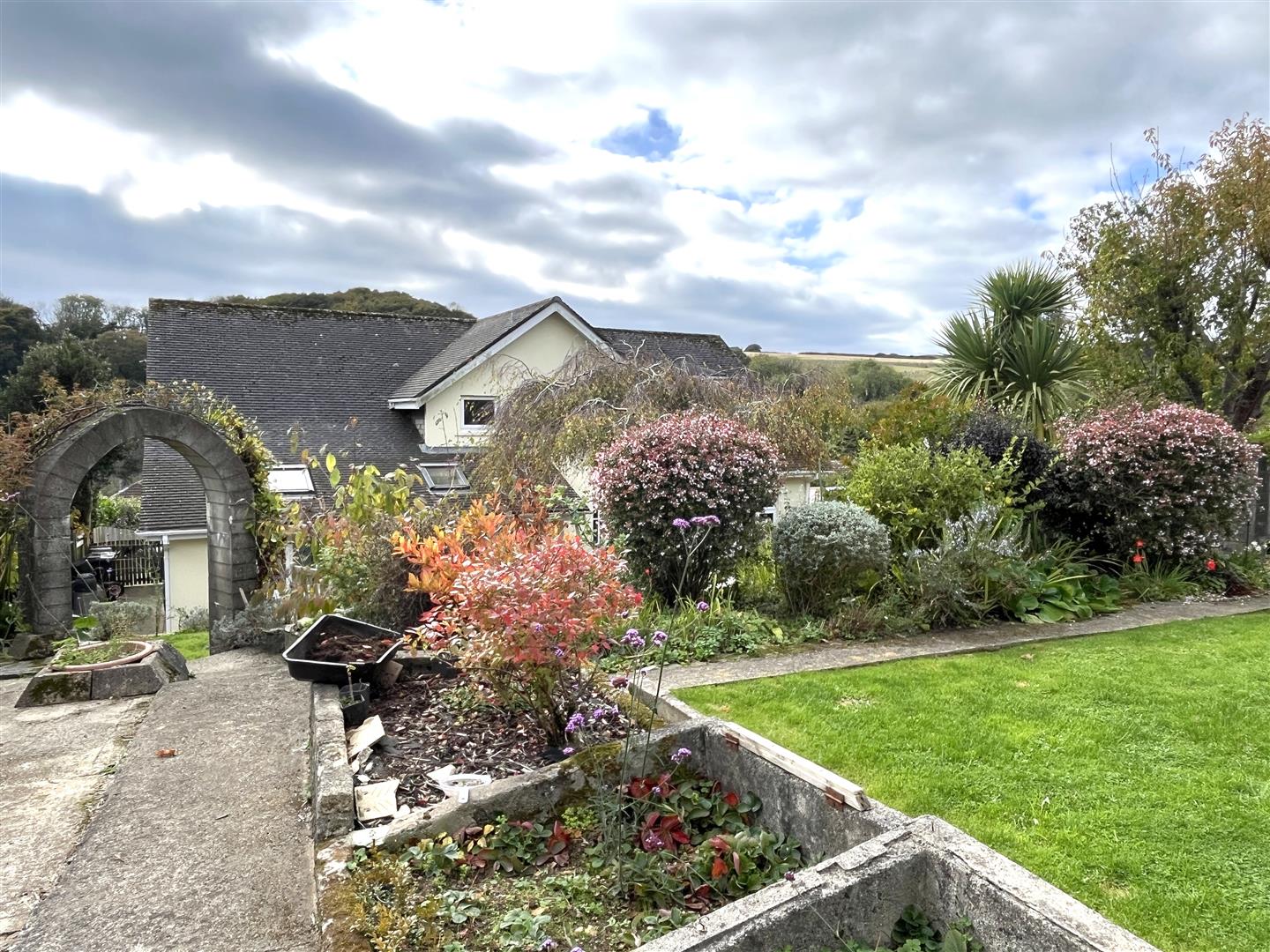 Outside - The driveway has parking for approximately 6 vehicles and there is access to the front garden which is laid mainly to lawn with mature hedging and borders planted with a variety of shrubs and plants. There is paved terrace in front of the sitting room sliding doors and pathways lead around both sides of the property to the rear garden, where there is a paved terrace. Steps lead further up the garden to a lawned terrace and a further area towards the rear of the garden which would be ideal for use as a vegetable garden, greenhouse area or similar. There are numerous mature specimen trees and shrubs making the gardens very attractive and delightful.