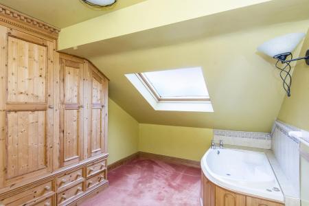 Family Bathroom - 3.94m x 2.79m (12'11" x 9'2") - Fitted white suite comprising spa bath, pedestal wash hand basin, bidet and low level WC. Fitted linen cupboards with radiator inside and pine doors. Wall light. Radiator. Opaque double glazed velux window. Extractor.