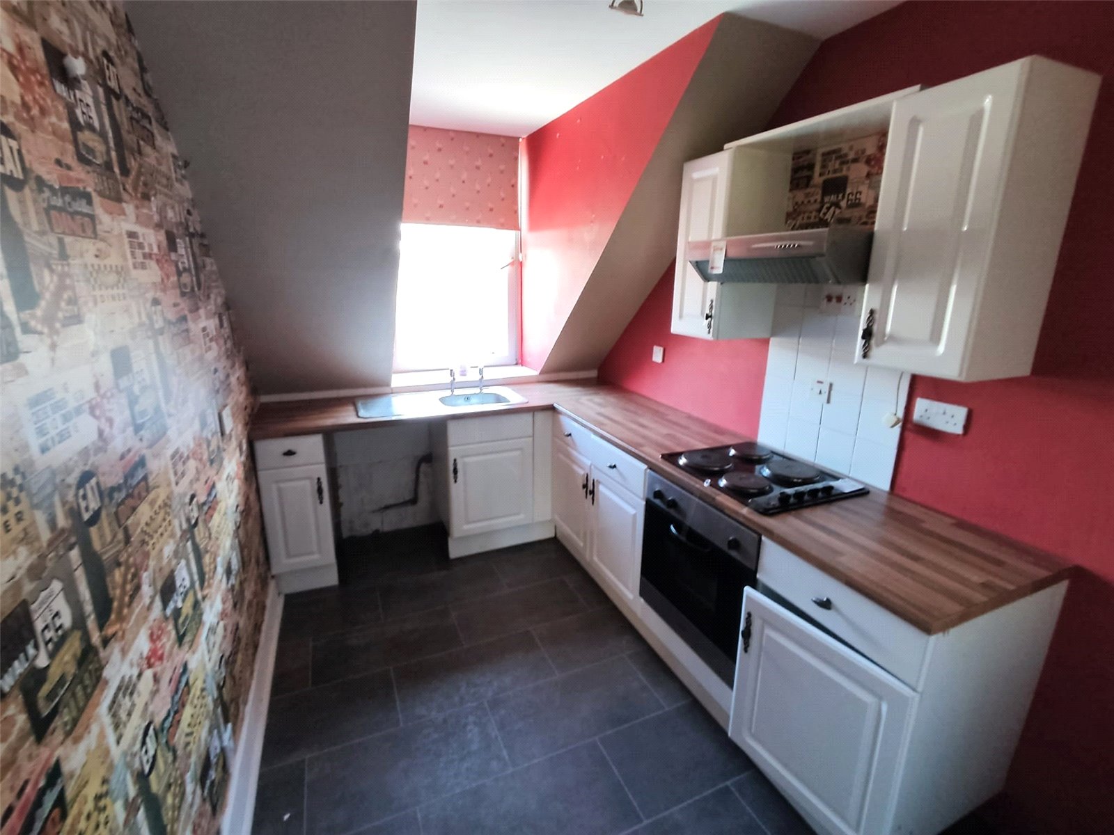 Located on the upper floor of this traditional granite two storey building the flat is accessed by a shared entrance hall. The flat enters into hallway leading to living room with large window, the kitchen has a range of units and integrated appliances. The double bedroom also benefits from a large window and the bathroom has both a bath and electric shower.