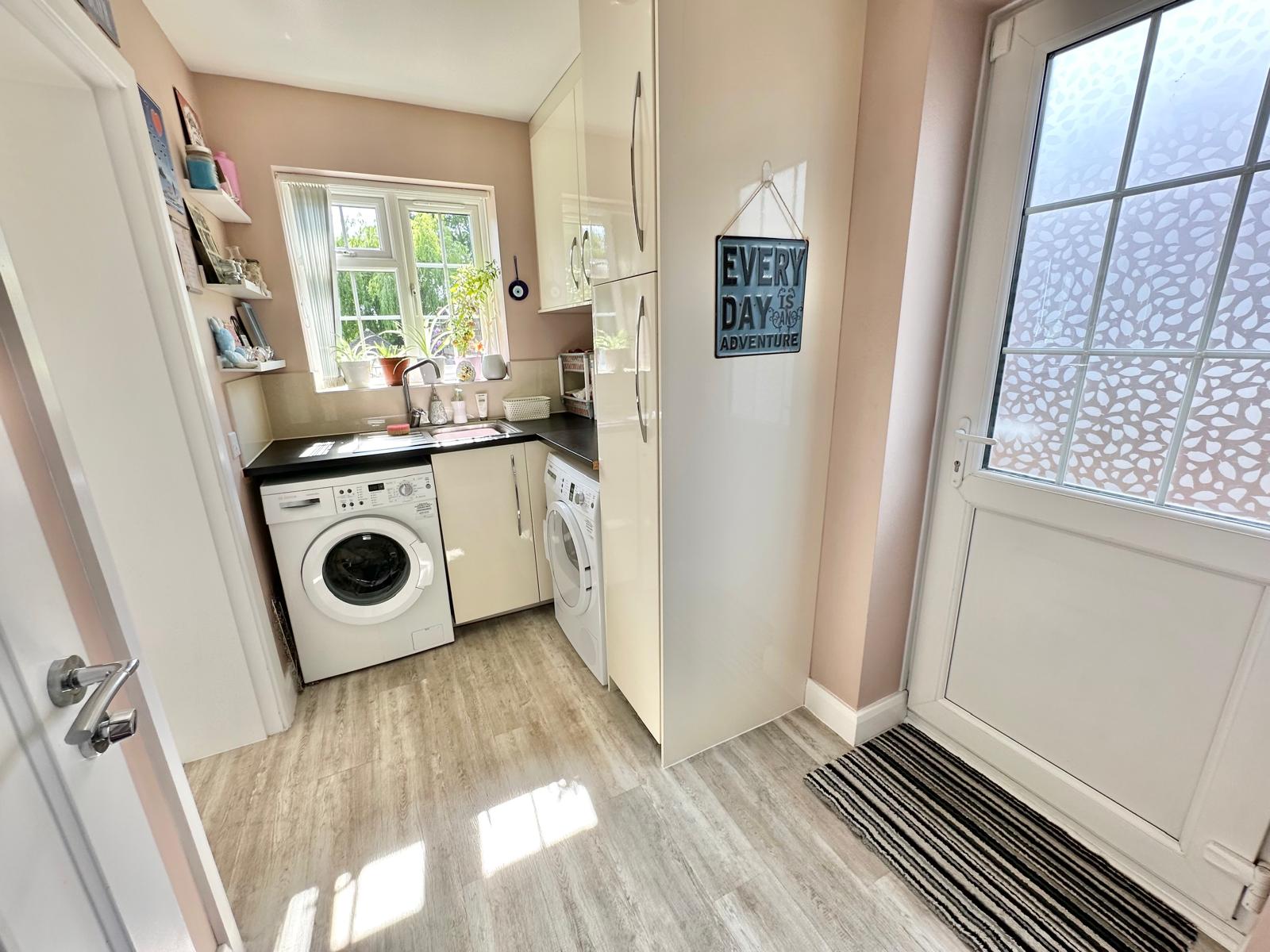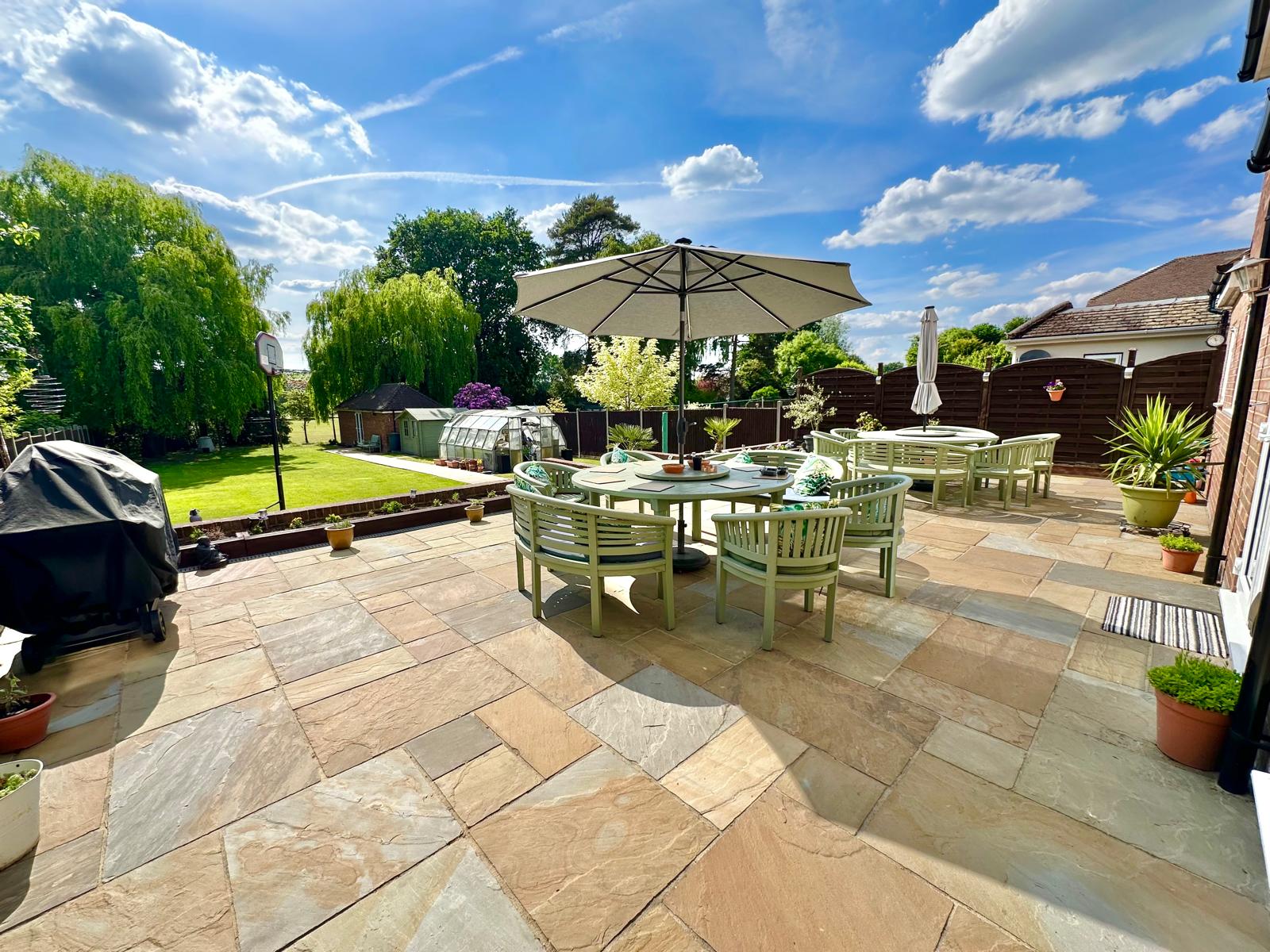 The sunny aspect rear garden boats a large patio with steps leading down to the lawn with a path all the way to the works shop. The workshop has uPVC French Doors, light and power. To the front of the property is an 'In Out' drive providing ample off street parking.