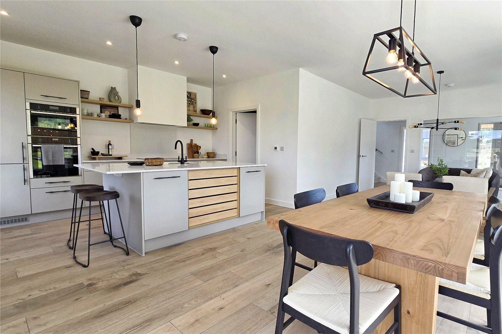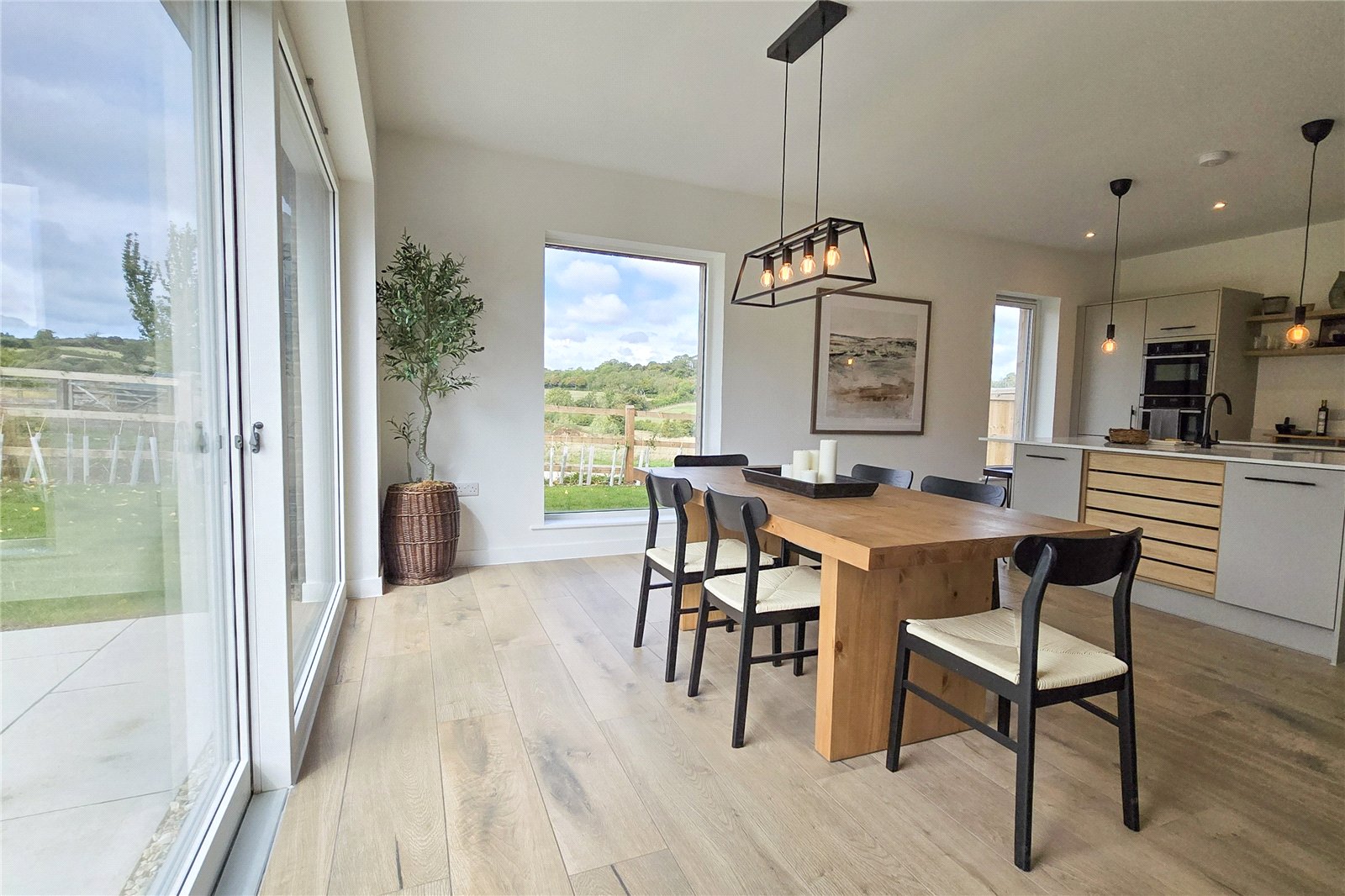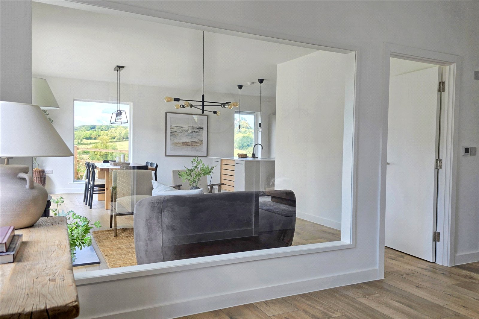 1 The Barn Garden is a large detached family home which has an enviable feeling of space and light. Once inside you will discover; an Inviting entrance hall with beautiful internal feature window, allowing visitors to fully appreciate the special location. The living room provides the perfect retreat to relax and unwind at the end of a long day. There is the stunning open plan kitchen/dining/family area which is the heart of this fine home. Ideal for entertaining family and friends, the space boasts a wood burning stove, ideal for those cozy winter evenings, large sliding doors help to bring the outside in and the kitchen with central island. There is an invaluable utility/ boot room with independent access and a smart cloakroom on the ground floor. Upstairs, you will find four double bedrooms and a luxurious family bathroom. The principal suite is particularly indulgent, taking full advantage of the glorious view, with dressing room and en suite. Externally there is off street parking for three vehicles, an electric car charging point and a delightful garden.