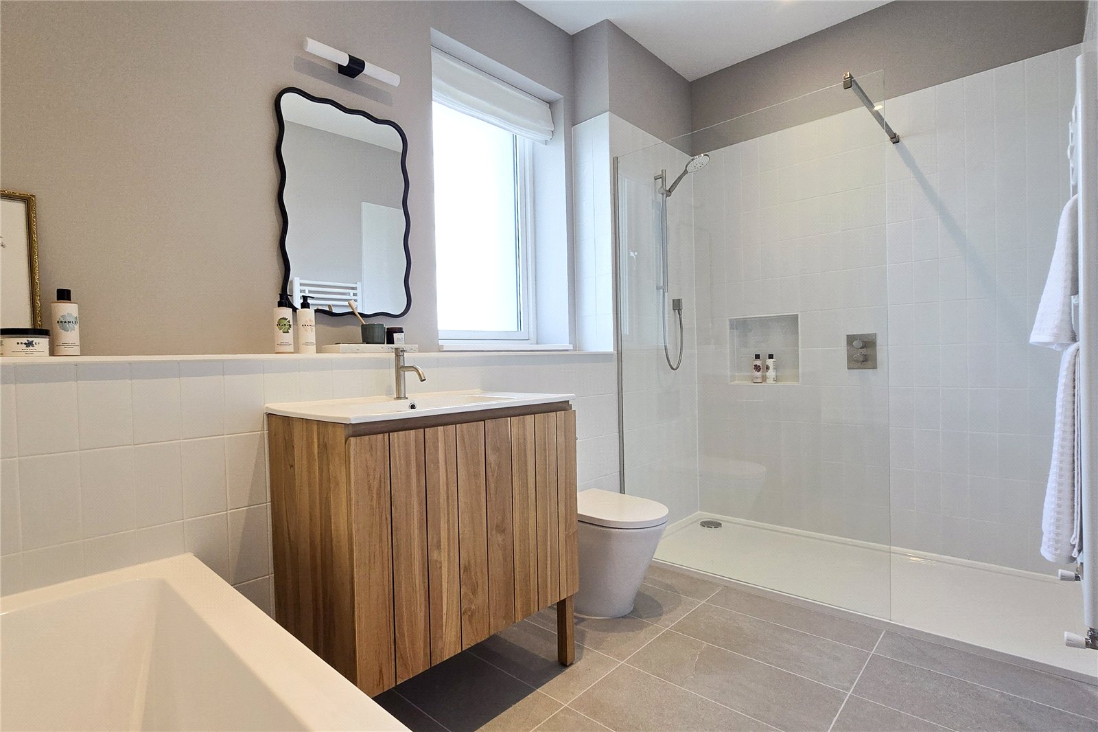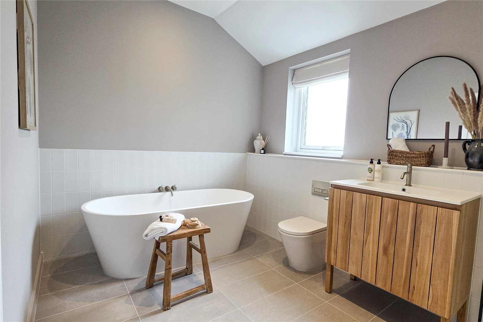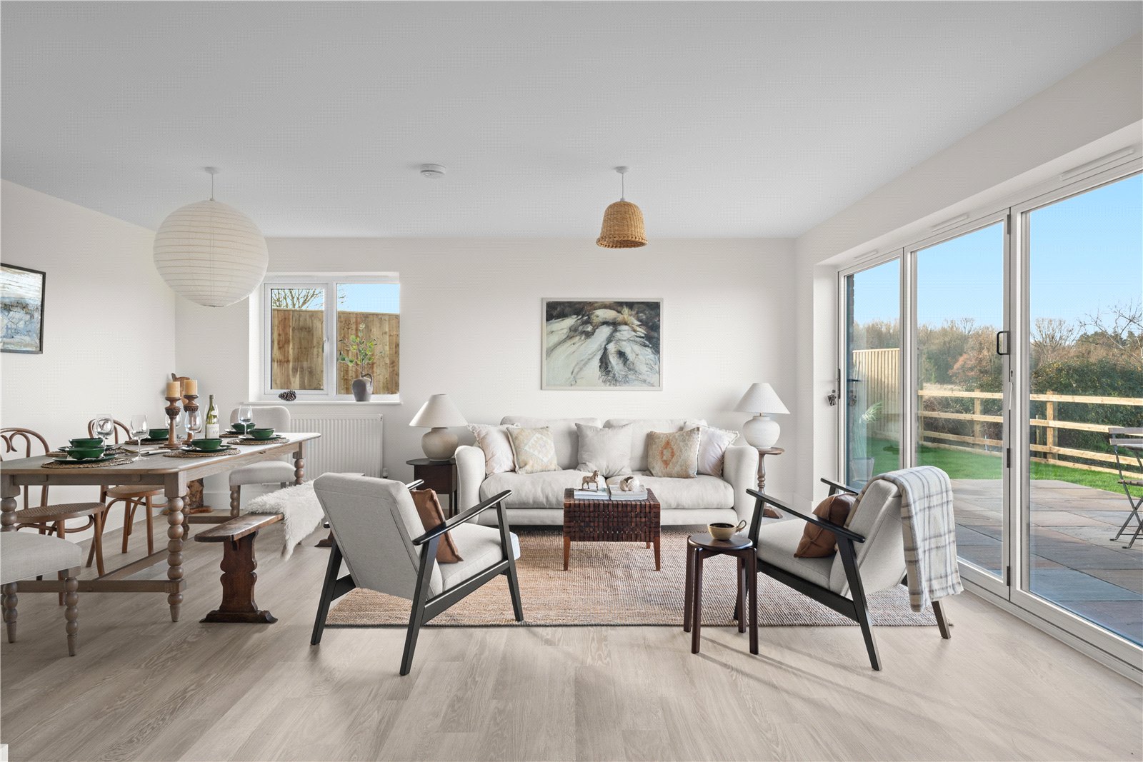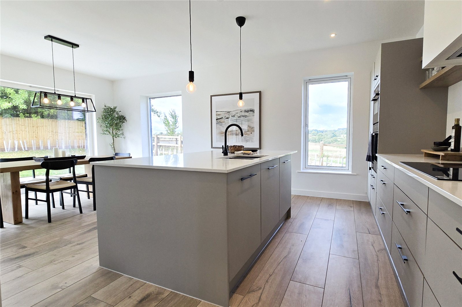 1 The Barn Garden is a large detached family home which has an enviable feeling of space and light. Once inside you will discover; an Inviting entrance hall with beautiful internal feature window, allowing visitors to fully appreciate the special location. The living room provides the perfect retreat to relax and unwind at the end of a long day. There is the stunning open plan kitchen/dining/family area which is the heart of this fine home. Ideal for entertaining family and friends, the space boasts a wood burning stove, ideal for those cozy winter evenings, large sliding doors help to bring the outside in and the kitchen with central island. There is an invaluable utility/ boot room with independent access and a smart cloakroom on the ground floor. Upstairs, you will find four double bedrooms and a luxurious family bathroom. The principal suite is particularly indulgent, taking full advantage of the glorious view, with dressing room and en suite. Externally there is off street parking for three vehicles, an electric car charging point and a delightful garden.