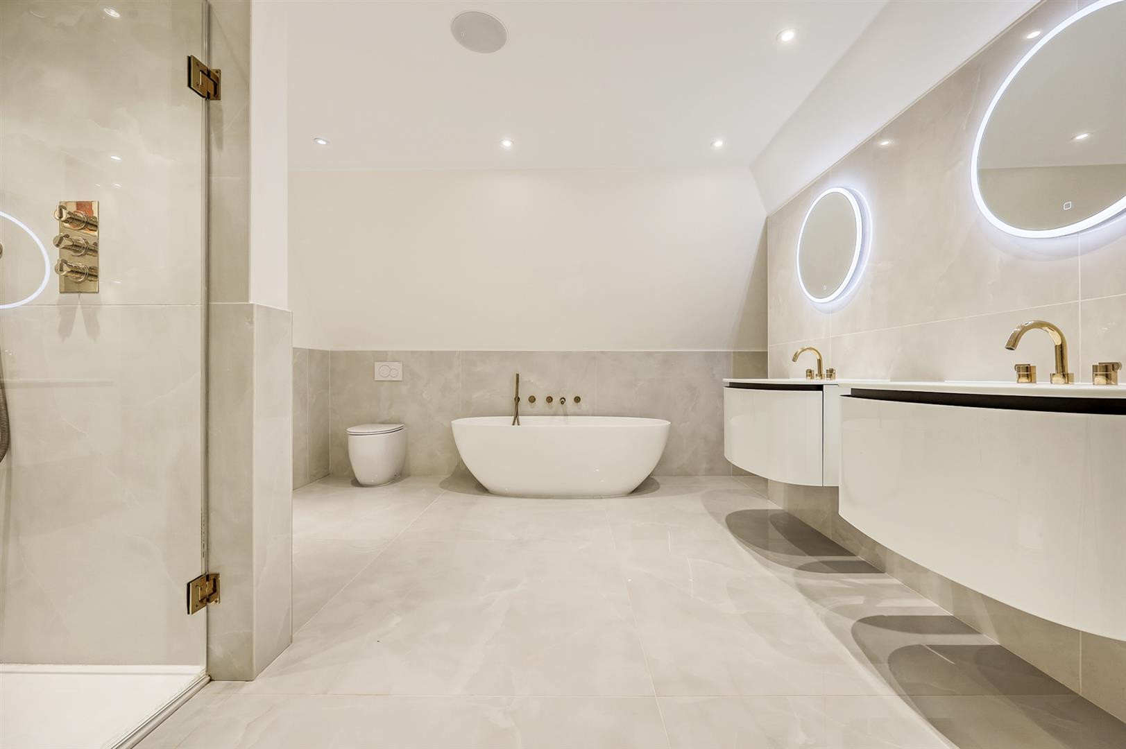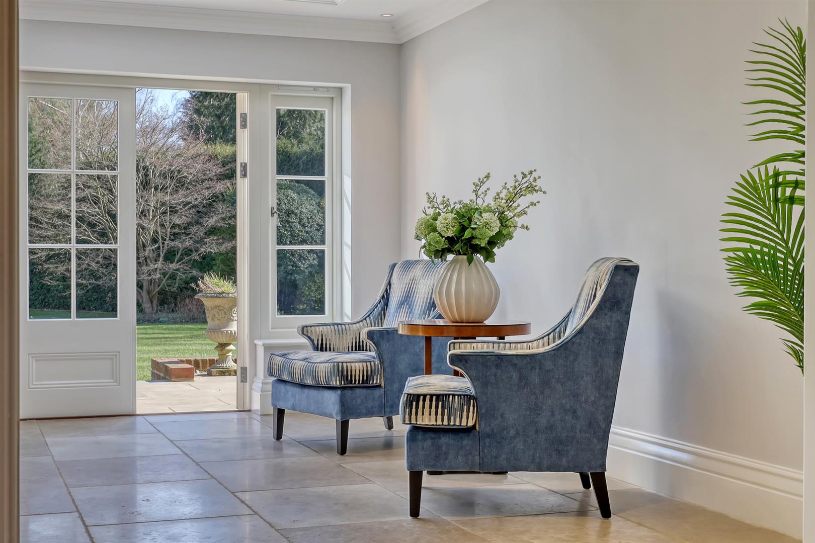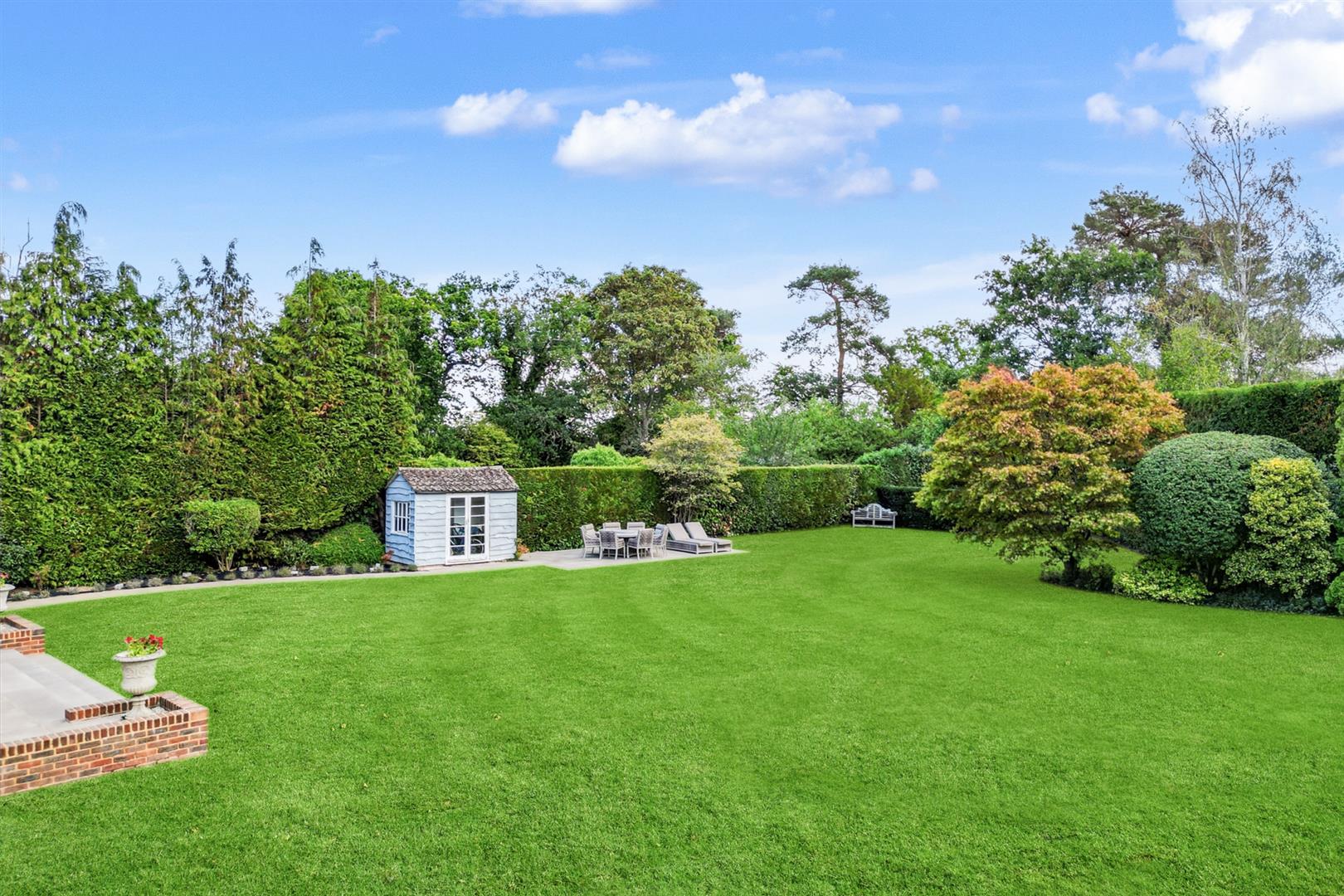 The large entrance hall sets the tone, with its generous proportions and sweeping staircase rising to a galleried landing above. Three reception rooms provide excellent versatility for day-to-day family living and entertaining alike, each space beautifully appointed with elegant finishes and Westbury windows allowing natural light to pour in.