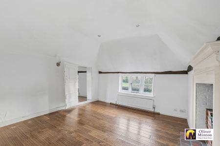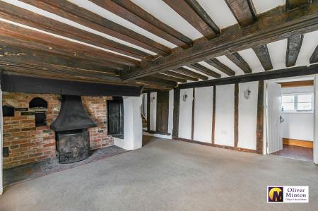 Double glazed window to front. 2 radiators. Exposed beams. Further double glazed window to side. Attractive open brick fireplace.