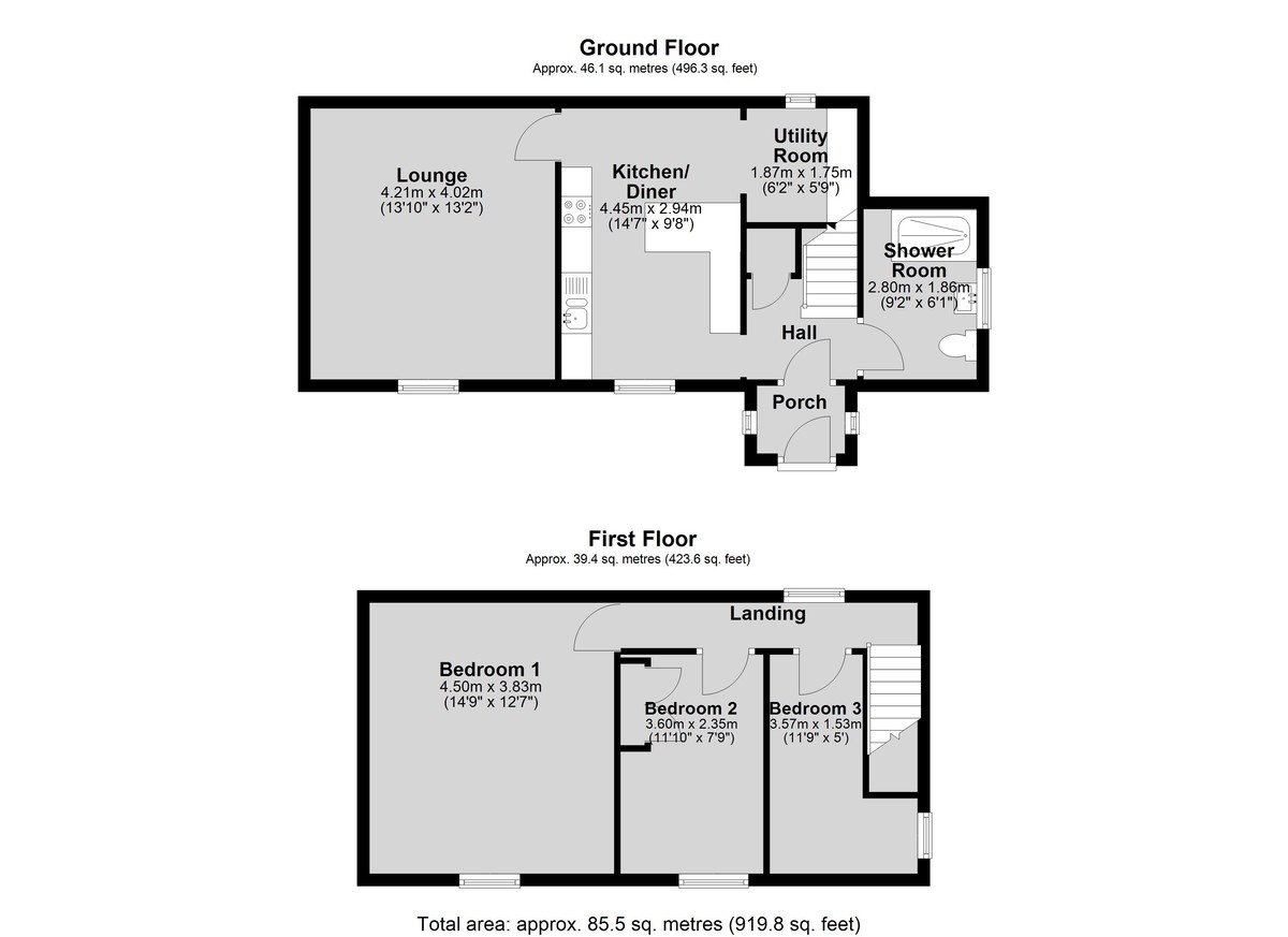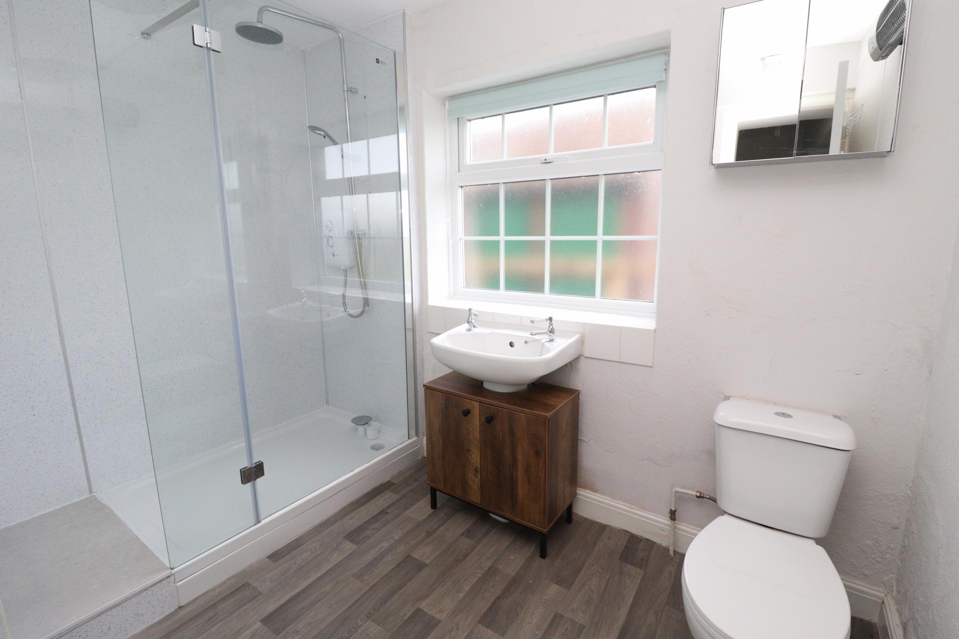 SHOWER ROOM Fitted with a three piece suite comprising of walk-in shower cubicle, pedestal wash hand basin and close coupled WC, tiled splashbacks, radiator and double glazed window to the side aspect.