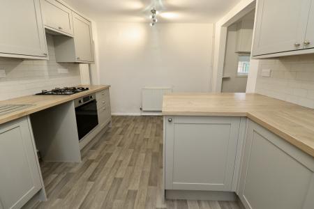 KITCHEN/DINER 14' 7" x 9' 7" (4.45m x 2.94m) Fitted with a modern range of wall and base units with work surfaces over, stainless steel 1½ bowl sink with side drainer and mixer tap over, electric oven with gas hob and extractor fan, spaces for fridge and washing machine, cupboard housing the wall mounted gas fired central heating boiler, tiled splashbacks, breakfast bar, radiator and double glazed window to the front aspect.
