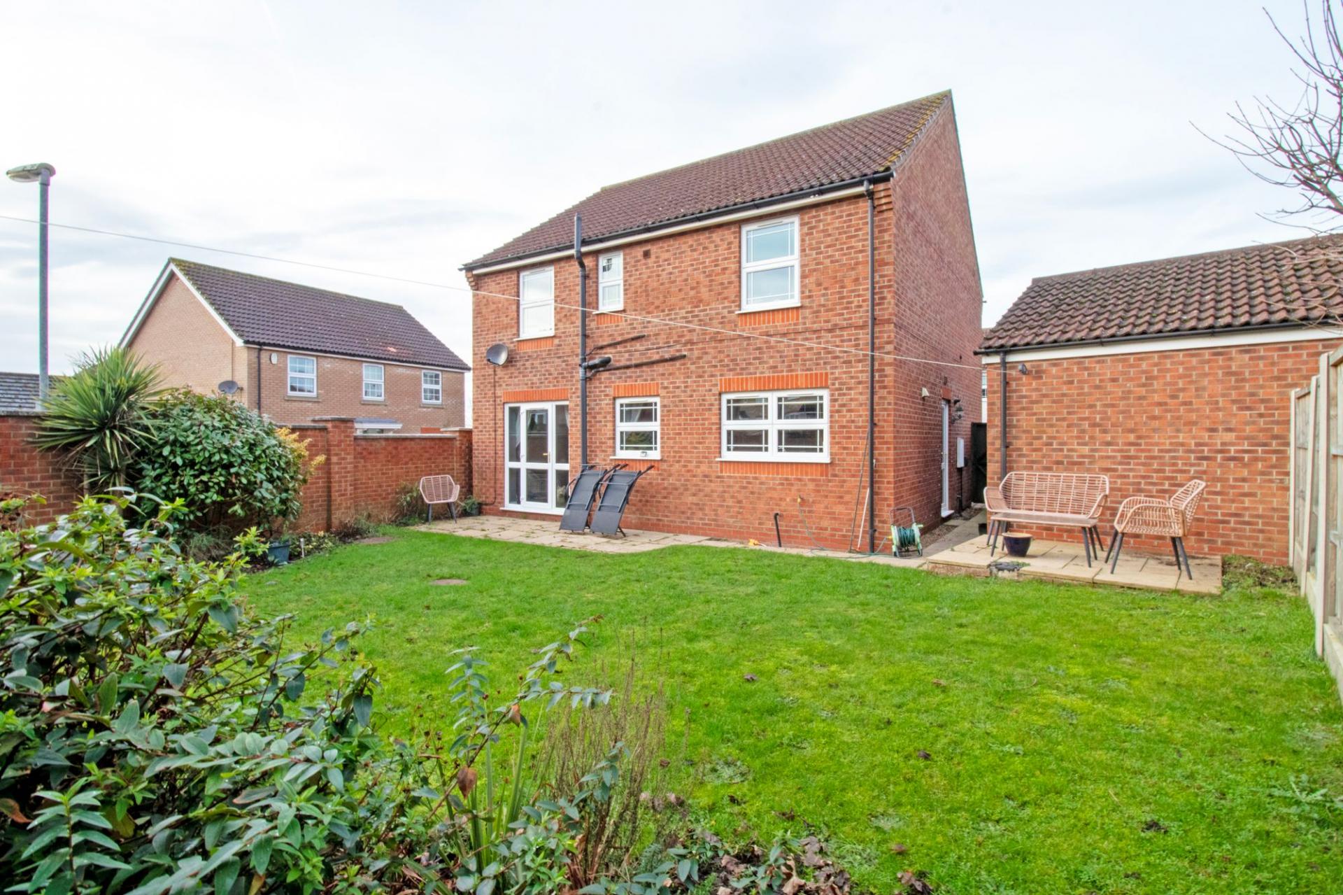 Spacious four-bed detached home in Bottesford with large rear garden, en-suite master, open-plan lounge, sunroom, garage...