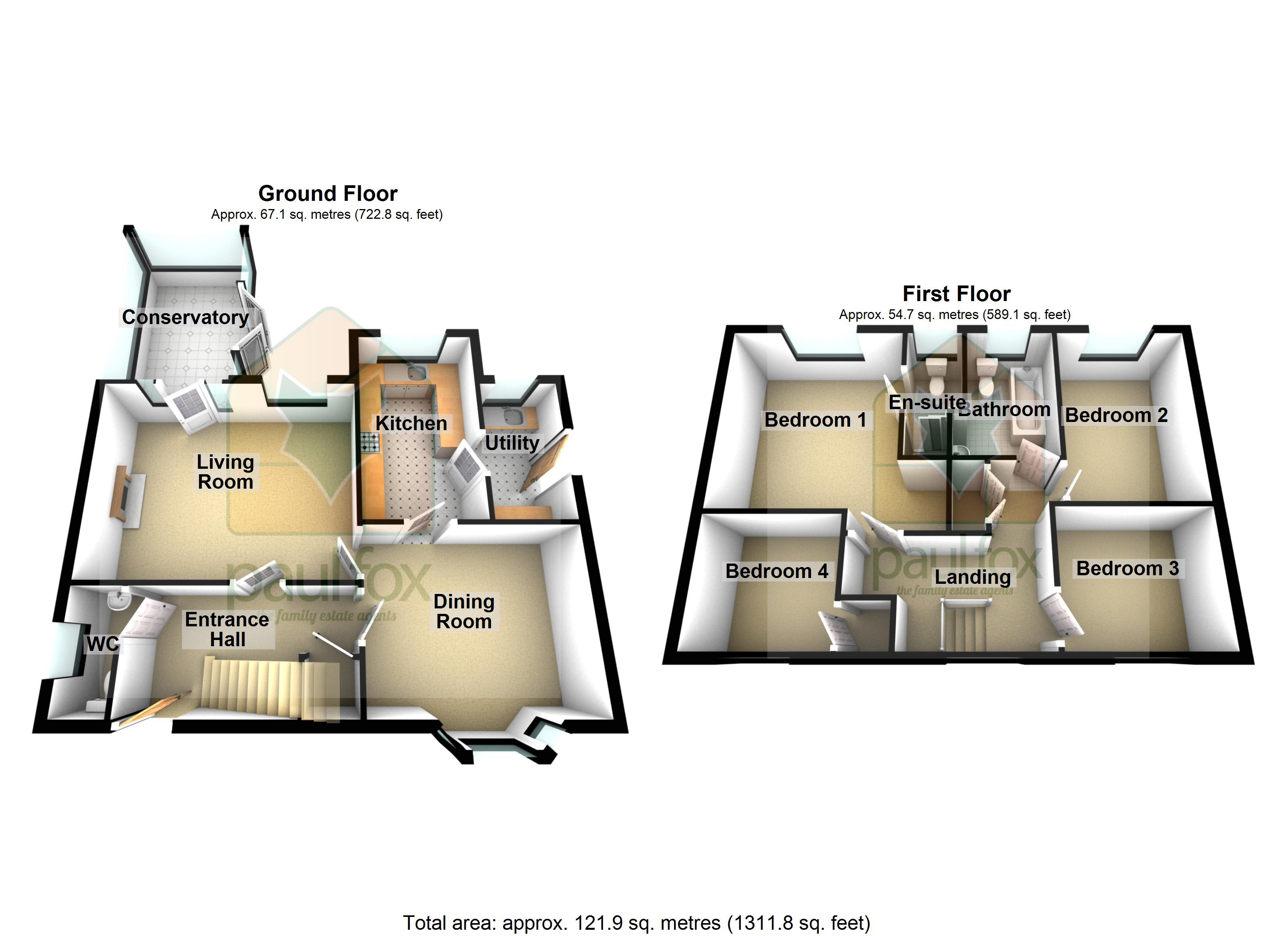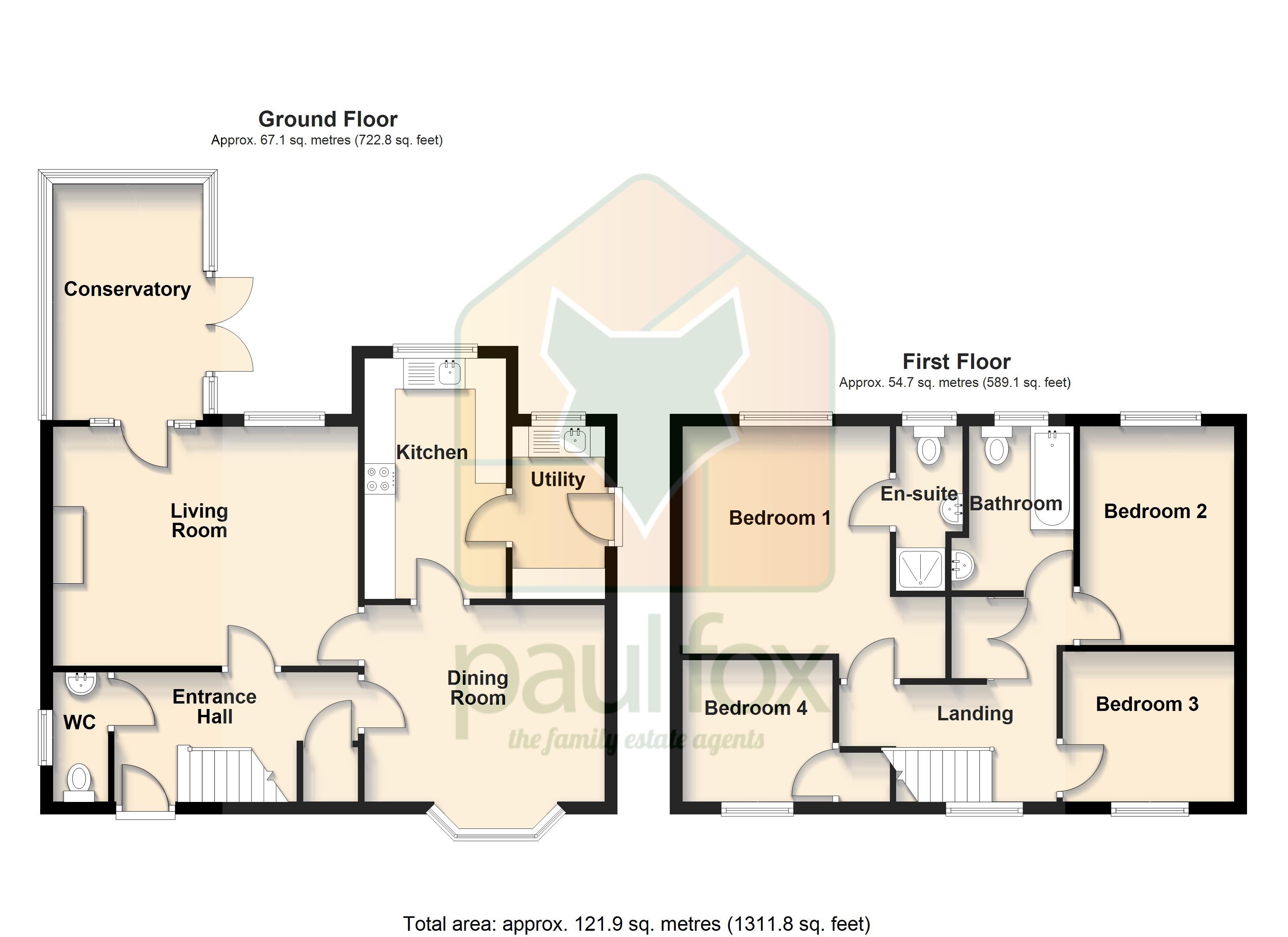 Bedroom 1 12' x 11'6" (3.66m x 3.5m).