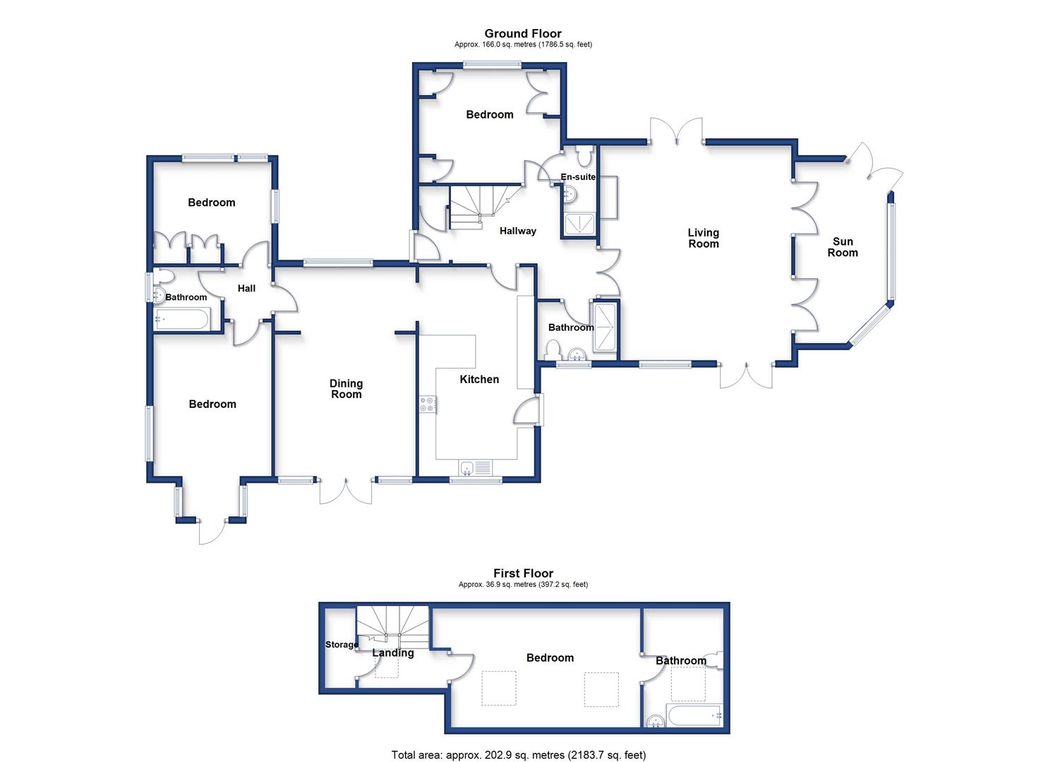 The flexible accommodation offers on the ground floor a spacious lounge, sun room, kitchen/breakfast room , dining room, three bedrooms one of which is en-suite and a bathroom. On the first floor there is a further bedroom with en-suite bathroom.