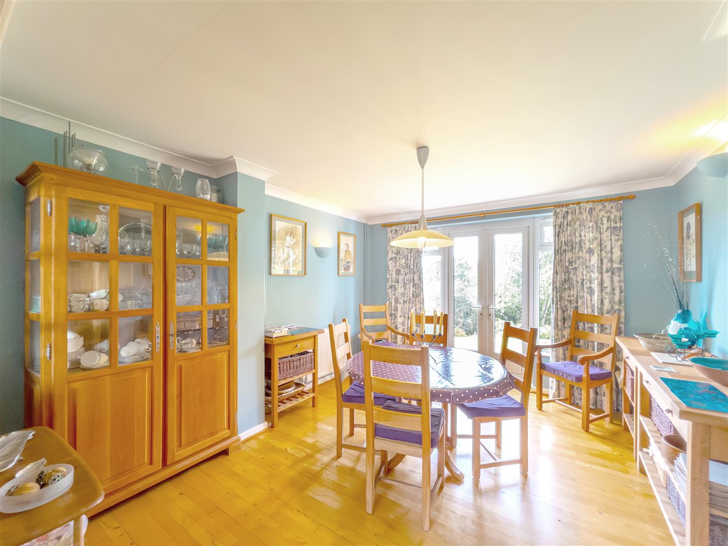 Dining Room - Currently split into two areas with tiling and wood flooring and is partitioned by sliding doors. There is a loft hatch to the roof space, windows to the rear and front aspect with further glazed French doors, again enjoying lovely vistas over the garden and woods, with a door to the inner hallway and a door to the bedroom.