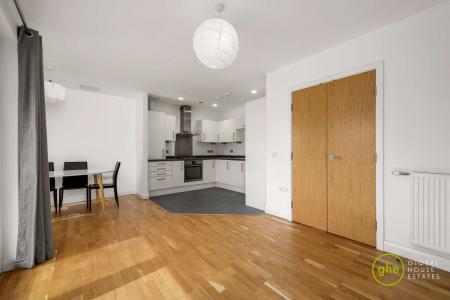 As you enter the property, you are welcomed by a hallway leading into a spacious open-plan living area, enhanced by large double-glazed windows that allow plenty of natural light to flow throughout the flat. Elegant wooden flooring runs through adding warmth.