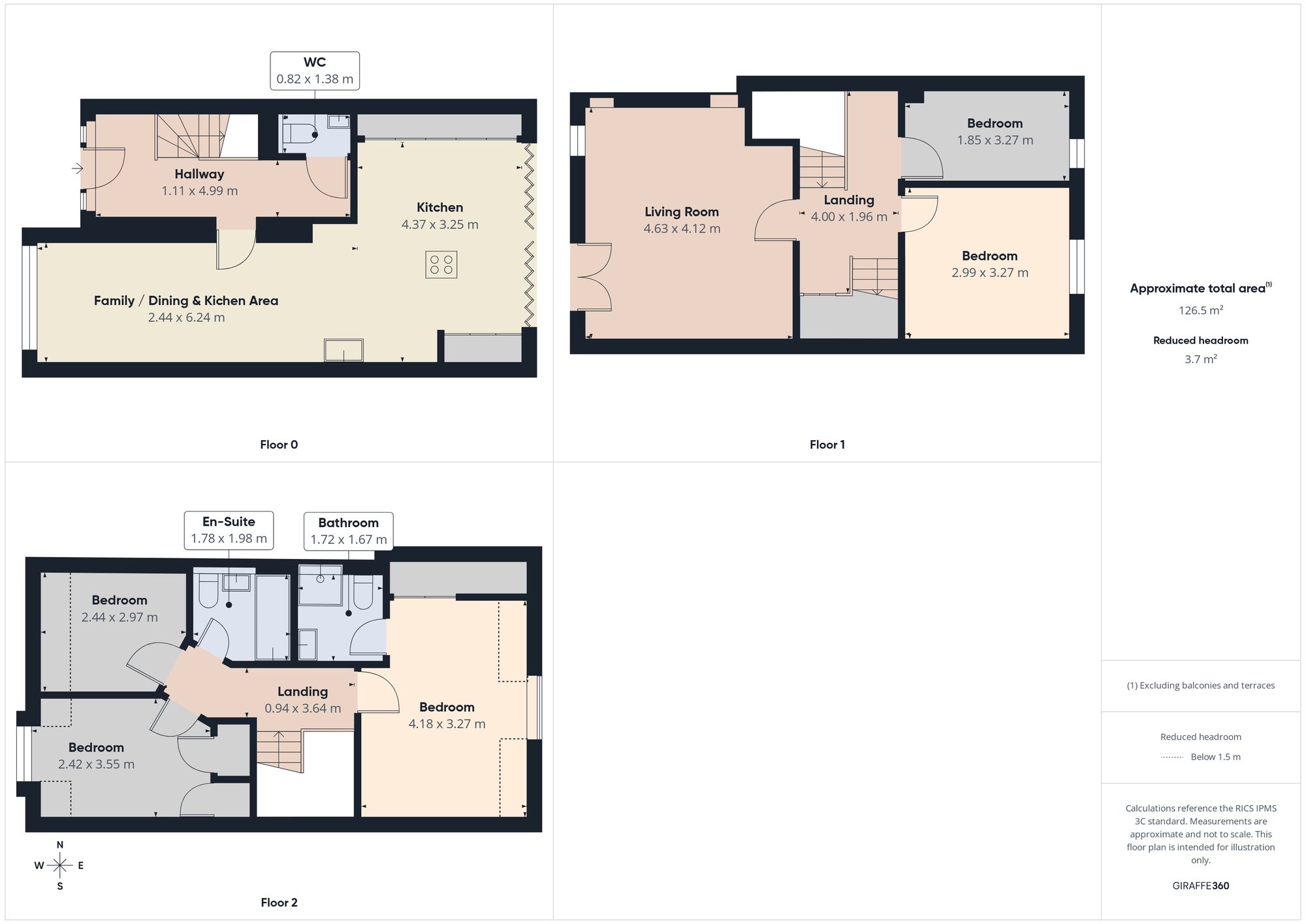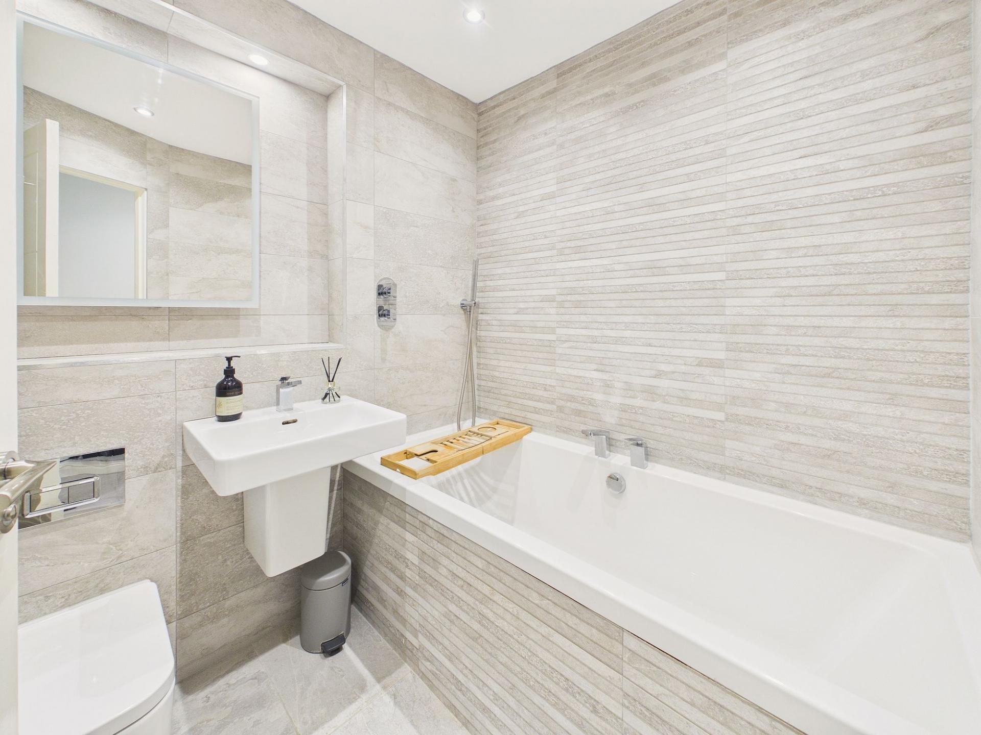 Upstairs, the master bedroom enjoys access to a stunning en-suite shower room featuring a walk-in shower, WC with concealed cistern, and a modern hand wash basin set within a floating vanity unit. The remaining two bedrooms on this level are served by an equally impressive family bathroom, thoughtfully designed to combine style and functionality.