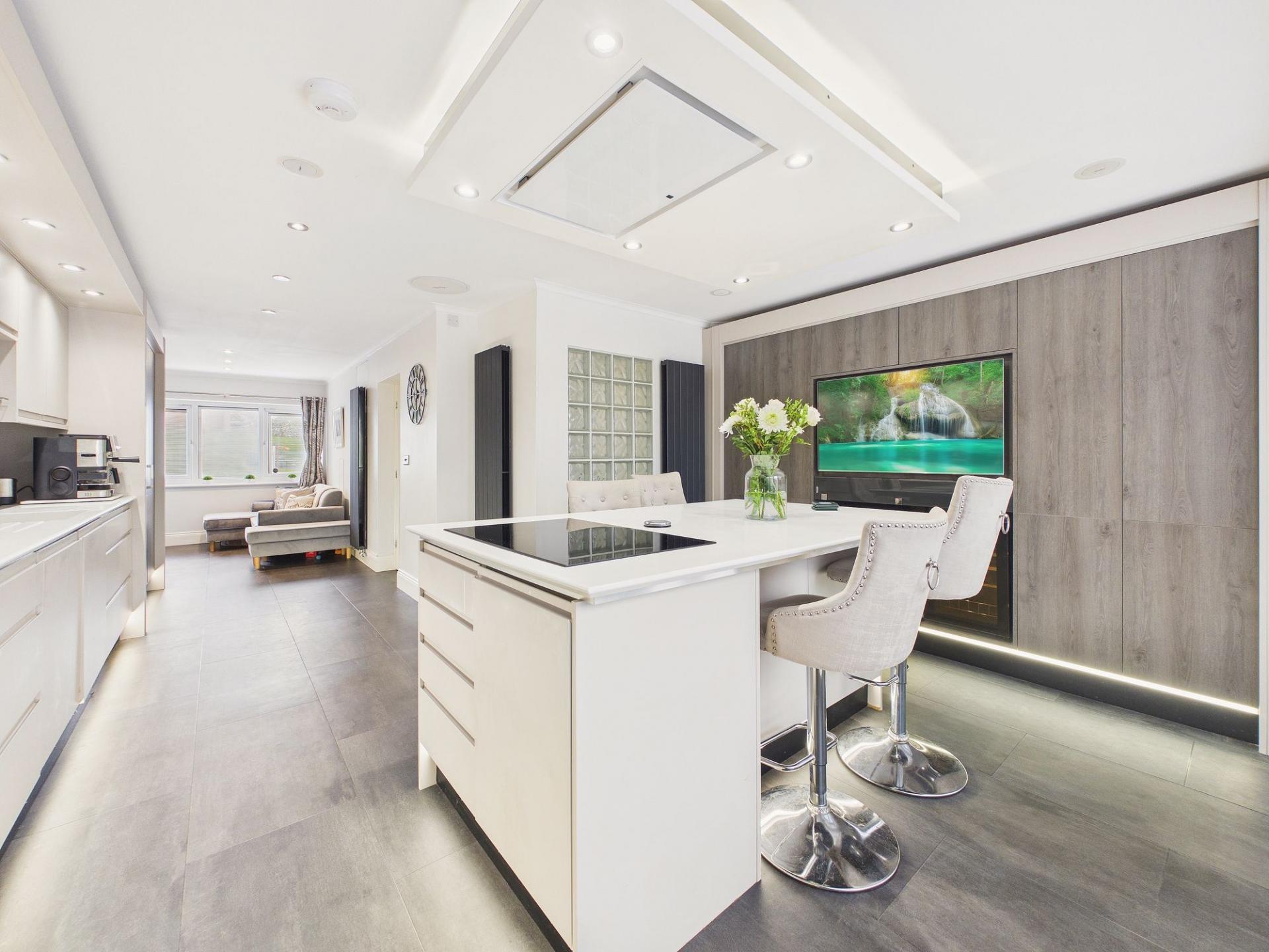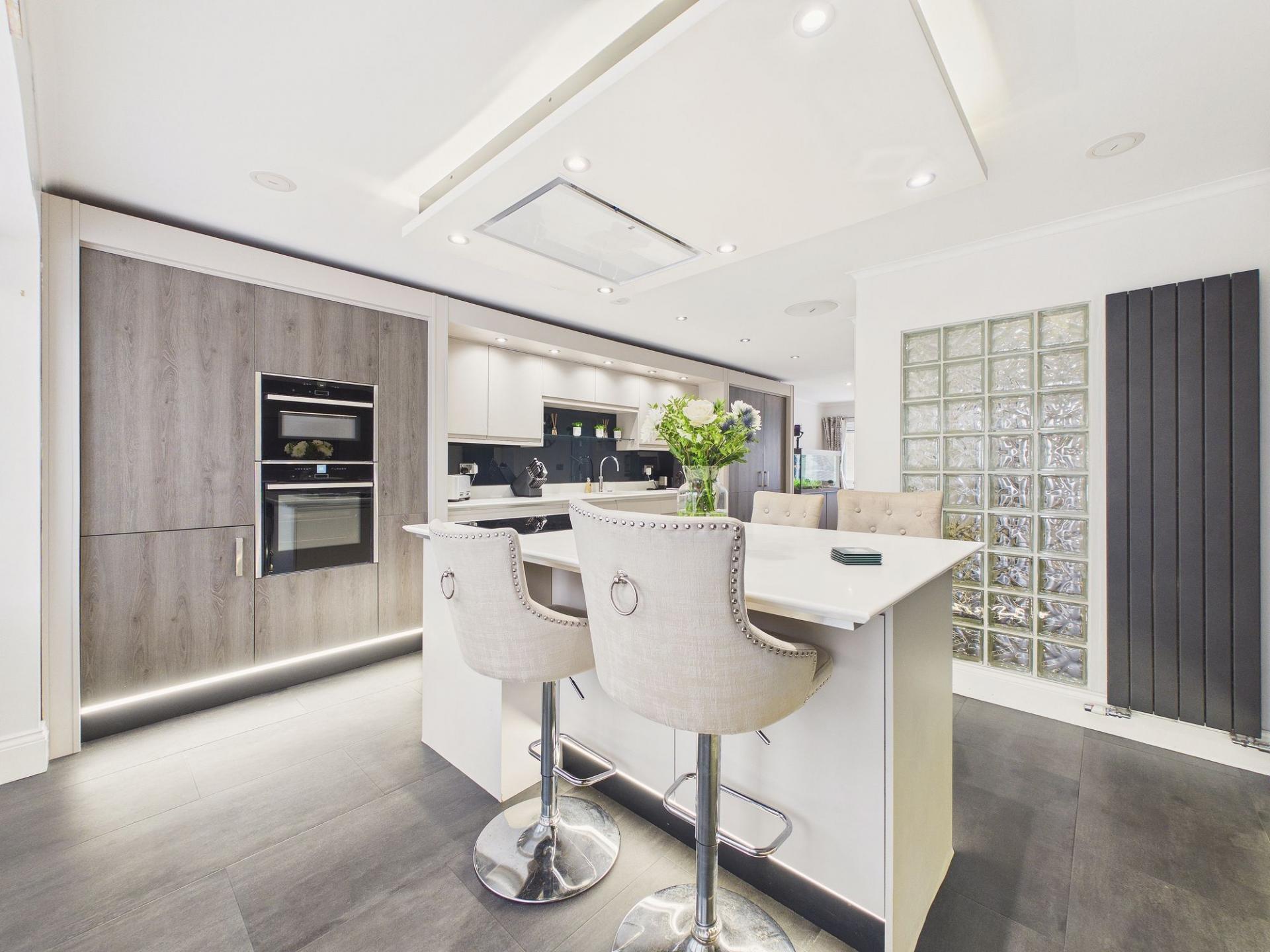 Upon entering, you are welcomed into a spacious entrance hallway, complete with a convenient downstairs WC. The hallway leads seamlessly into a magnificent open-plan kitchen, dining, and family area, creating a stylish and inviting space ideal for both daily life and entertaining. The kitchen is thoughtfully designed, showcasing a stunning range of contrasting units and built in cooking appliances. A central preparation island incorporates a hob and breakfast bar, providing both a functional workspace and a social hub for family gatherings. Bi-folding doors open directly onto the enclosed rear garden, effortlessly connecting indoor and outdoor living. The family/dining area, positioned to the front of the home, offers a versatile space for relaxation and dining.