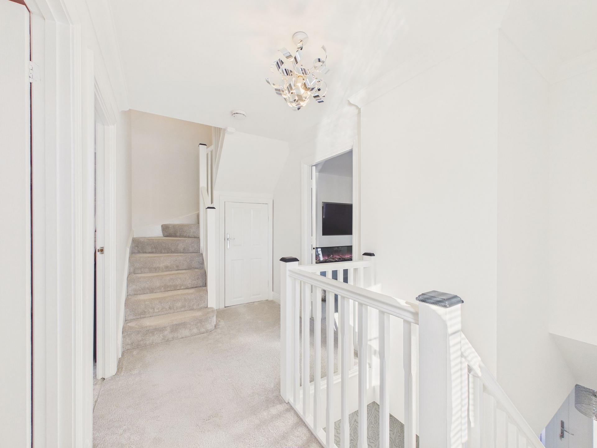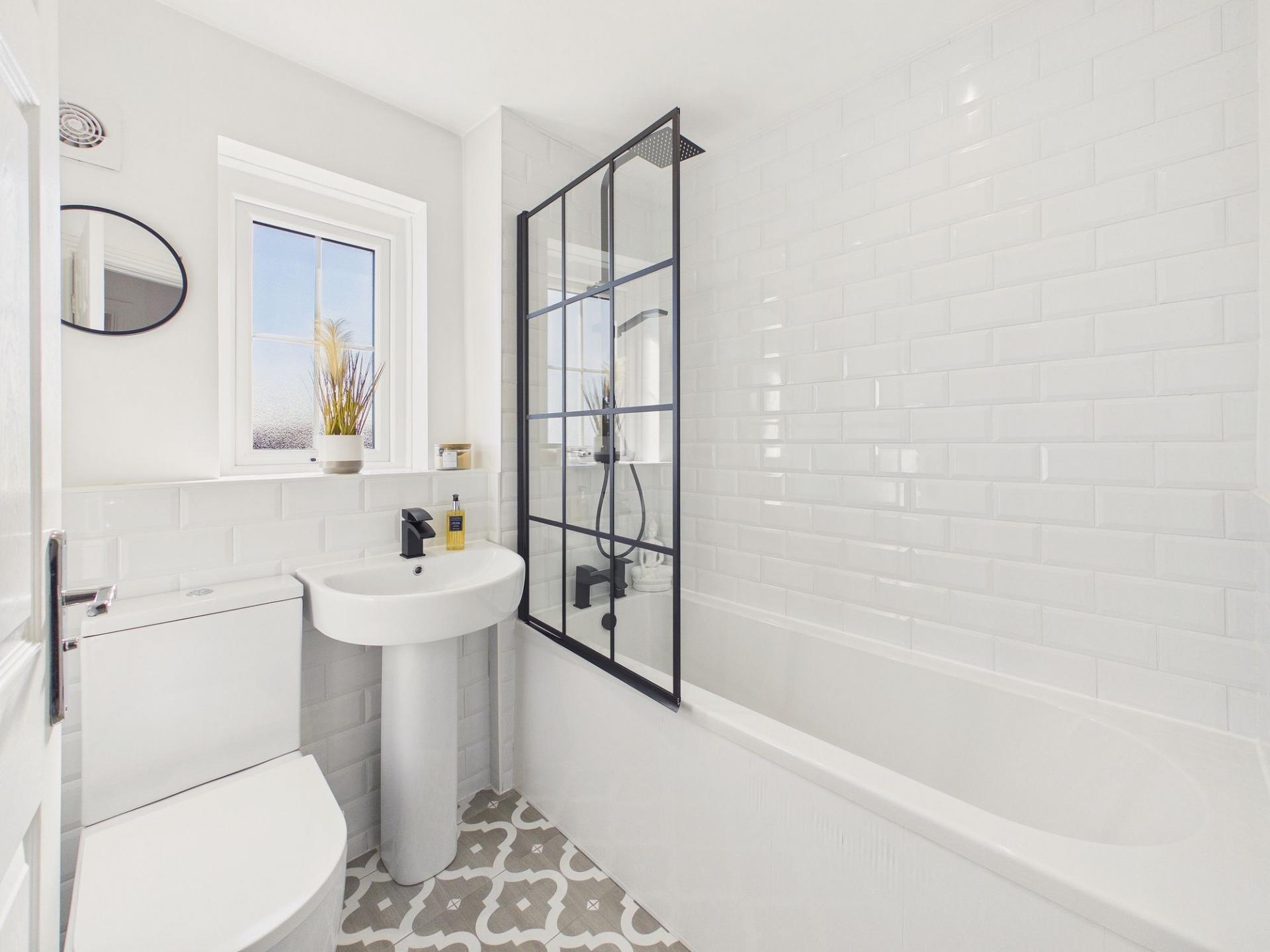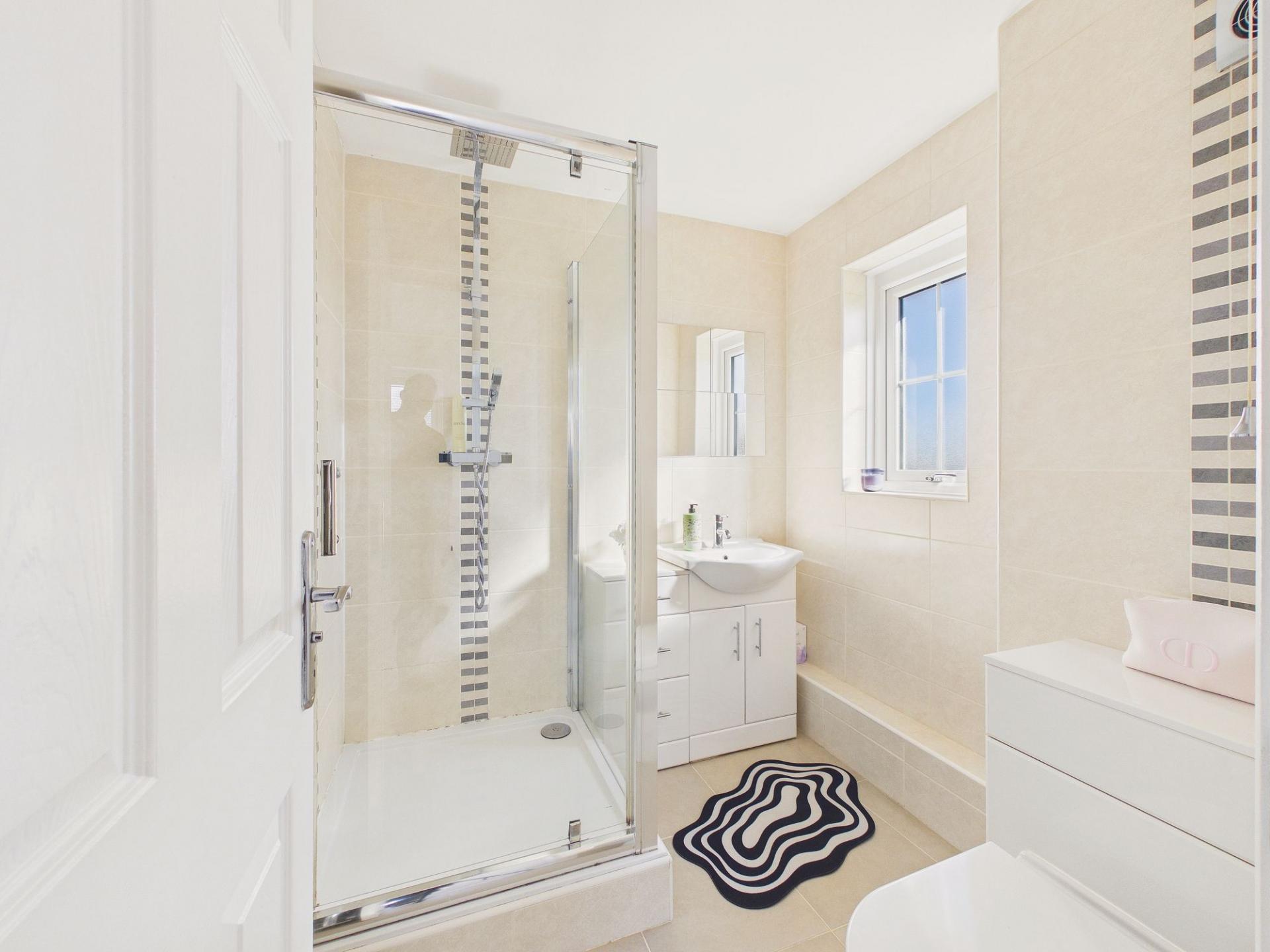 The second floor boasts two further double bedrooms, both benefiting from built-in wardrobes, with the main bedroom further enhanced by a modern en-suite shower room, featuring a corner shower enclosure, hand wash basin set within a vanity unit and WC. The remaining bedrooms are served by a stylish family bathroom, fitted with a mains-fed rainfall shower over the bath, a hand wash basin, and WC.